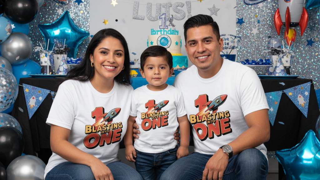 These shirts are ideal for cake smash photos, family portraits, daycare celebrations, themed birthday parties, and matching outfits for the entire family. With fast turnaround, free shipping, and no minimums, it is simple to create first birthday shirts for groups of any size.