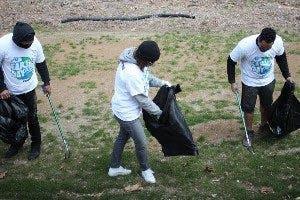 Our headquarters in North Philadelphia neighbor Benjamin Rush State Park. Our team, all wearing t-shirts that would have otherwise ended up in landfills, are out cleaning up our neighborhood, removing trash from the woods, park, and surrounding areas. We’re sorting through trash and making sure that anything that can be recycled and reused is in the right place.