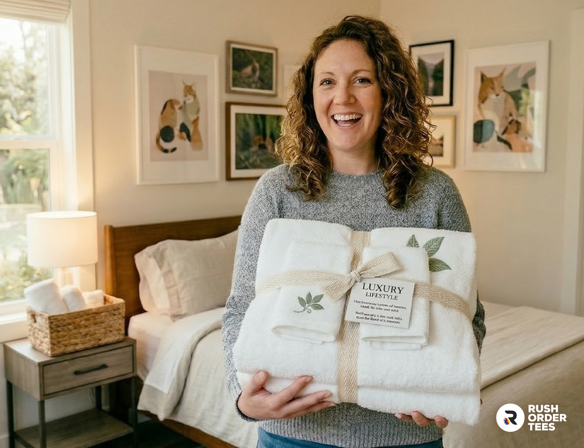 - Build curated kits. Pair towels with complementary wellness or relaxation items like eye masks, robes (https://www.rushordertees.com/robes/), or bath products to create VIP gift packages or executive welcome boxes that feel personalized rather than mass-produced.
