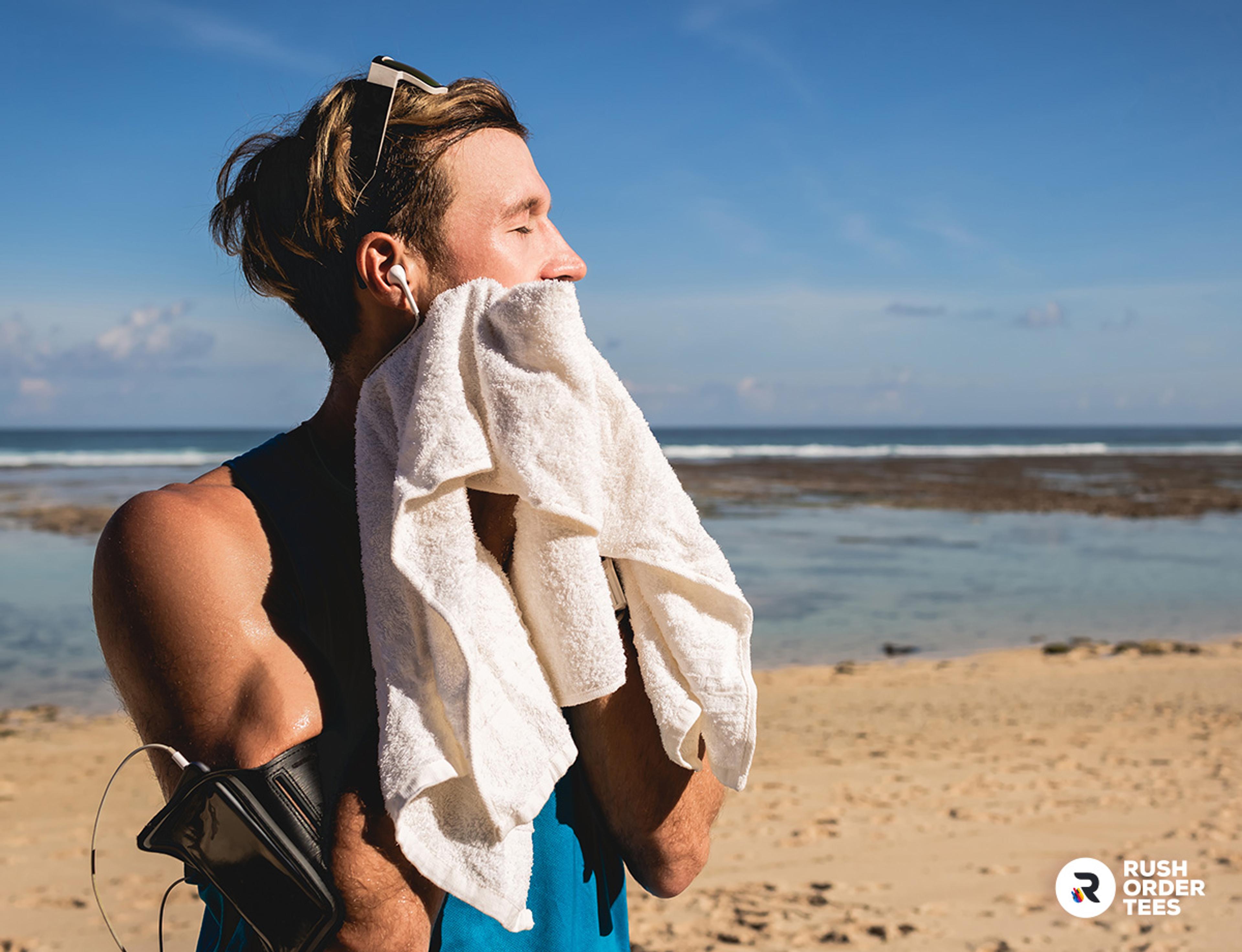 - Maximize your print real estate. Beach and pool towels (https://www.rushordertees.com/towels/beach-towels/) offer huge, uninterrupted branding surfaces that are visible from a distance. In crowded public spaces like resort pools, water parks, and music festivals, a bold towel design stands out in ways that a hat or t-shirt simply can't.