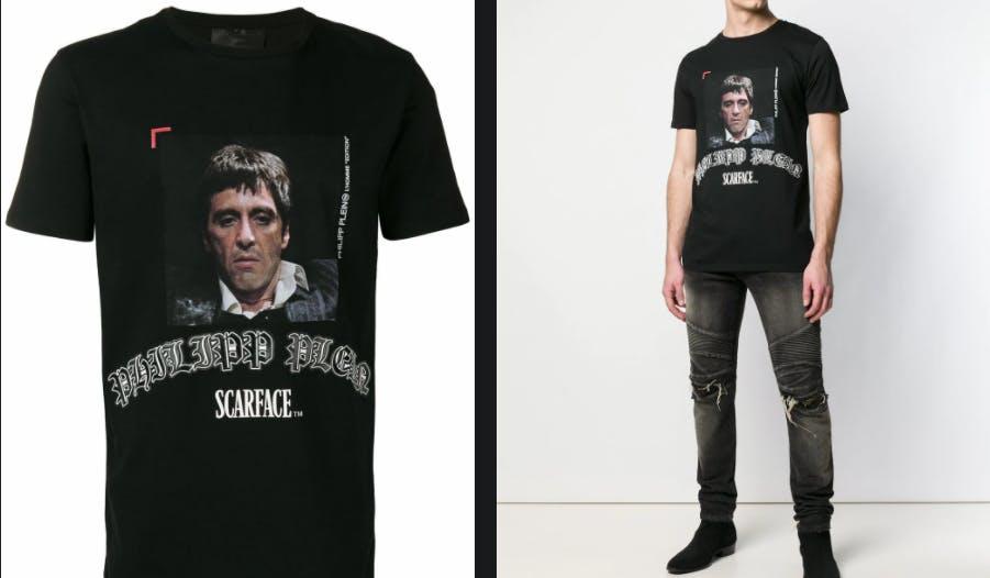 Also– whisper it– this shirt kinda looks like something you’d find at a hypothetical “Scarface: The Roller Coaster” gift shop, no? Less ‘high fashion’ and more ‘boardwalk souvenir,’ I think. But still, it makes our list of expensive shirts.