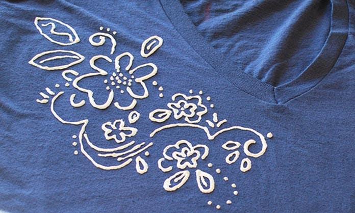 Freehand acrylic painting is a similar process to using marker stencils, but has the potential to be much messier. Besides the color (paint, in this case), you’ll need a few brushes of various sizes. Take extra precautions to protect clothing and surfaces, as acrylic paint is not easy to get out of anything. Messy-ness aside, your kids will love the chance to let their creativity shine through without boundaries. Make your own t-shirt, too!