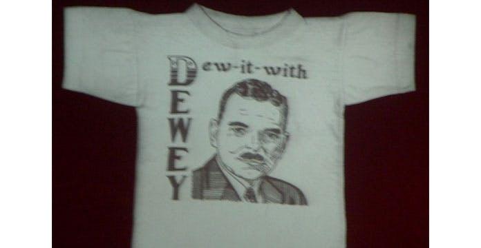 Perhaps the first use of t-shirts as a promotional medium (or at least the oldest t-shirt with a printed slogan) was in 1948, when presidential candidate Governor Thomas E. Dewey printed the slogan “Dew-It with Dewey” on t-shirts during his campaign. You can see one of the original t-shirts for yourself at The Smithsonian Institute, which has it on permanent display.