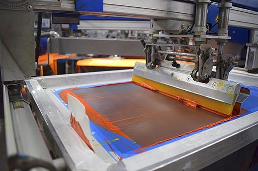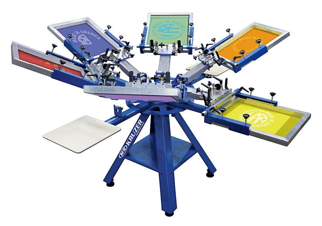 Typical cost for an entry-level auto screen printing press is $34,000 and might produce 500 prints/hour with two employees.