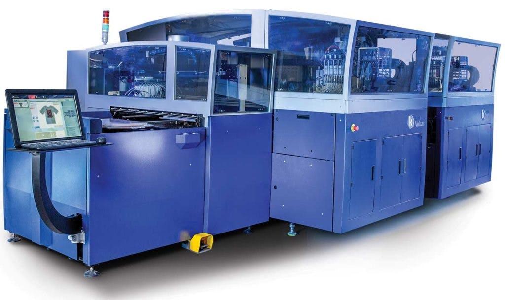 Tom: An automatic screen printing press is much faster. The fastest Direct To Garment Printer on the market as of 2018 is the Kornit Vulcan, which does 250 prints per hour – with a machine that costs around $800,000. A $34,000 automatic screen printing press can print 500 prints per hour.