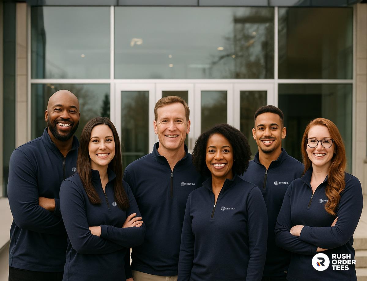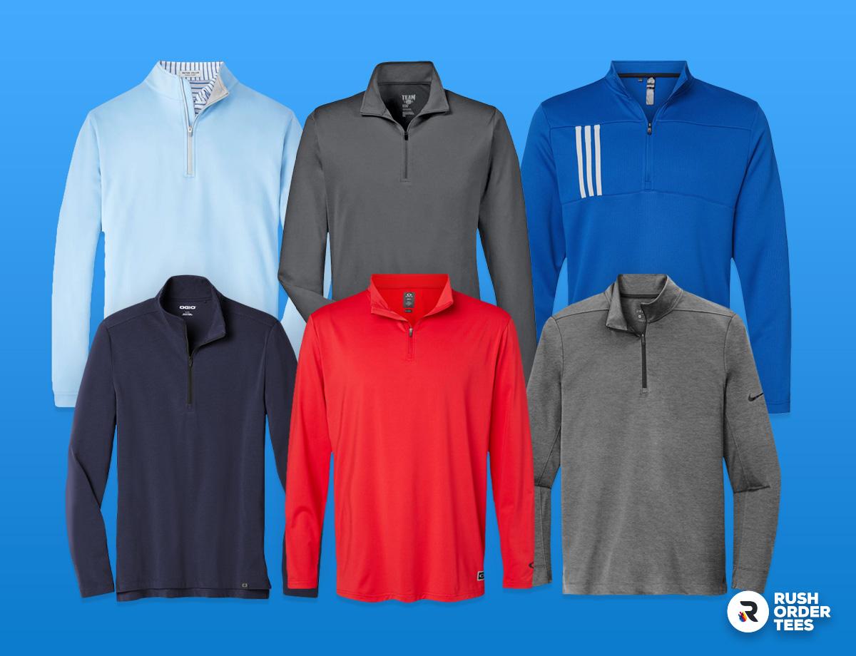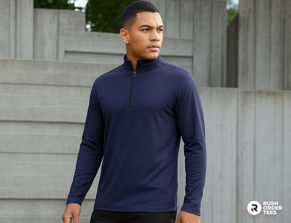 At RushOrderTees, we've decorated thousands of quarter zips across every major brand. Our in-house team understands the nuances of different fabrics and decoration methods, ensuring your logos and designs enhance these versatile layers. Whether you're outfitting a corporate sales team or creating merchandise for your fitness studio, we'll help you select the right style and decoration approach for your specific requirements.