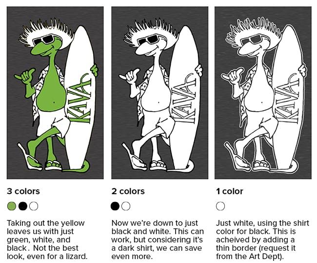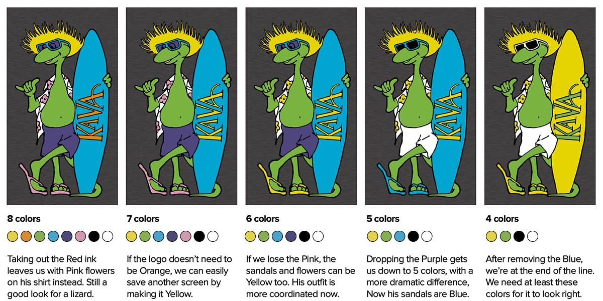 For a design like this, once you go below 4 colors it will significantly change the look of the print. But maybe that’s fine, and you really just need to get the best price on your order. Here are those options:
