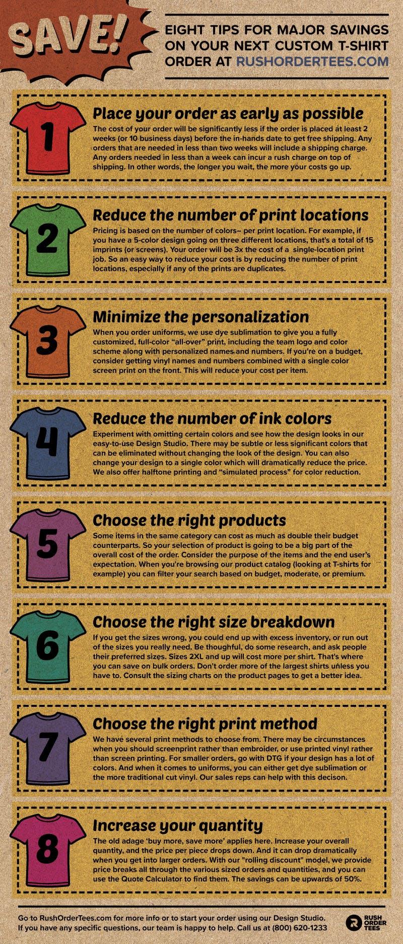 Follow these 8 tips and you’ll get much more bang for your buck on your next order! Save the infographic below for future reference, and you can read more about our pricing here.