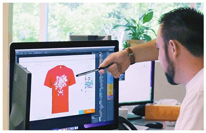 To request simulated process printing, add that to the Design Notes section in the Design Studio (below the T-shirt mockup) and a team member from Sales or Art will take care of your order.