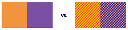 Halftones are a powerful way to reduce your colors on screen printed jobs. If you have a full-color image that is detailed and photographic with gradients, and you’d like to try to keep the look of your design while saving money, you can request a simulated process print. This uses the principles of process printing (CMYK) but uses spot colors.
