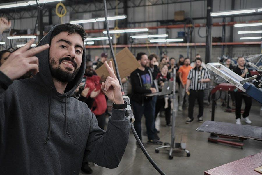 The fastest screen printer we have– possibly in the world– and your 2019 Six Shooter Champion is… Evan Watkins.