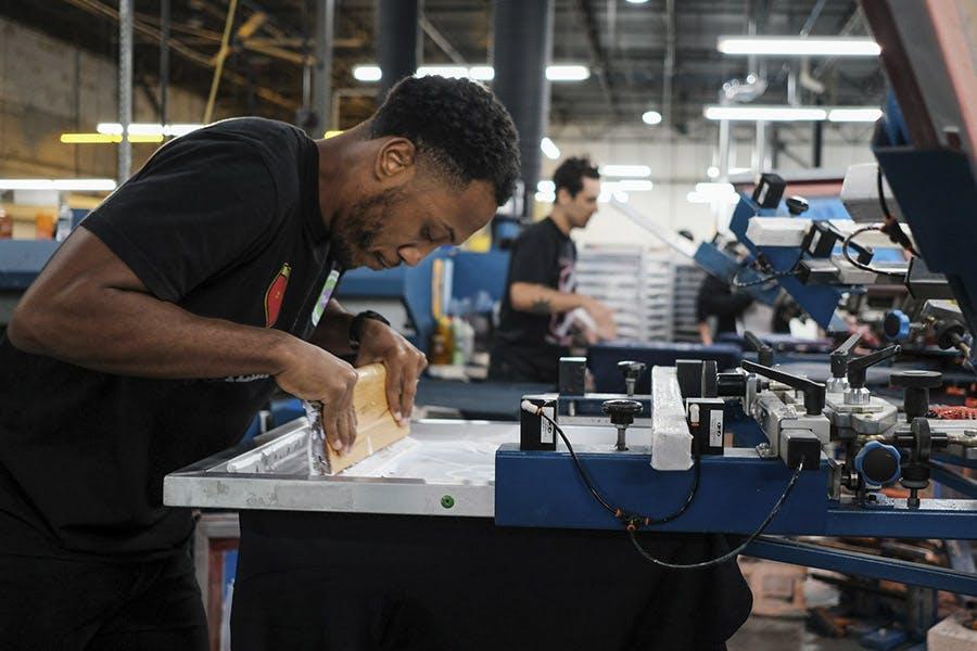 There are some auto guys [automatic print machine operators] who hop on a manual [machine] and practice on live orders so that they can get their hands acclimated with manual printing again, instead of auto printing.