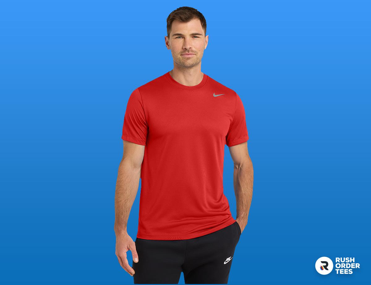 Why We Love It: This tee is crafted with Dri-FIT technology, and its lightweight knit fabric offers a soft feel with a classic athletic fit. Combining high-quality materials, moisture-wicking innovation, and a versatile style, this custom short-sleeve tee is a can’t-miss pick for just about any application.