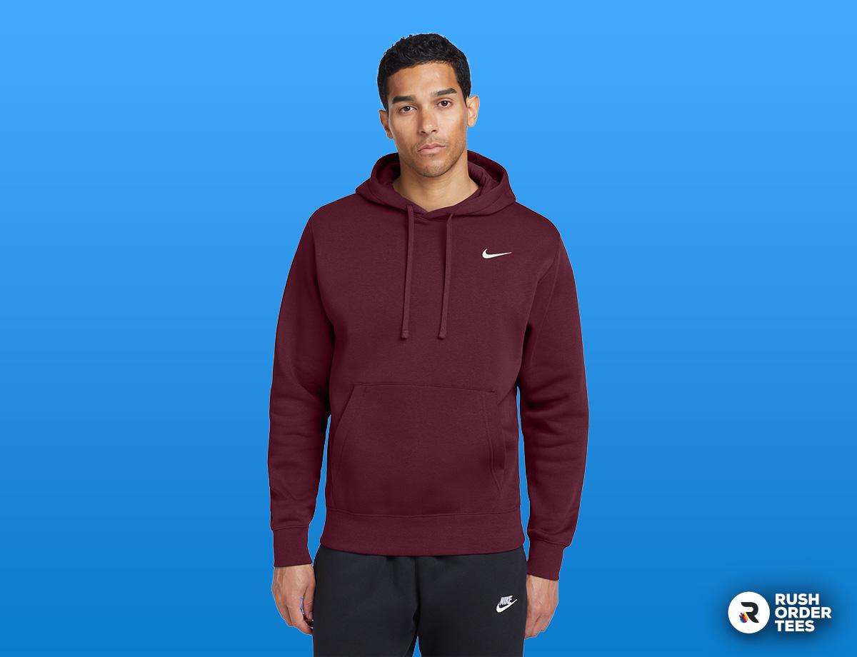 Why We Love It: Looking for just the right in-between layer? The Dri-FIT polyester construction of the Club Fleece Pullover keeps you dry, and the breathable vertical mesh helps you stay cool while you’re working out, playing sports, or exercising. This sharp-looking custom hoodie is great for everything from work-from-home “office” wear to cohesive team attire.