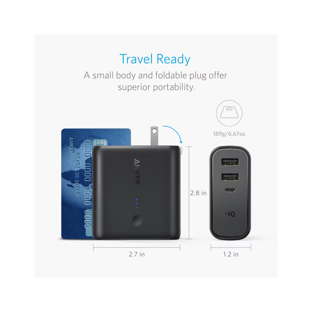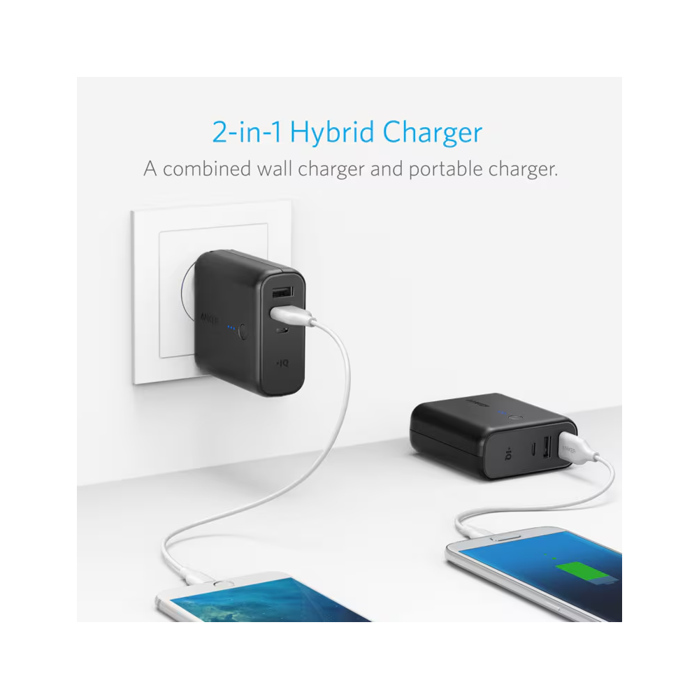 The Anker PowerCore Fusion 5000 is the ultimate 2-in-1 charger, combining a high-capacity portable battery and a dual-port wall charger in one sleek design. Whether plugged into the wall or on the go, PowerIQ and VoltageBoost technologies ensure fast, efficient charging for all devices. Featuring Anker’s MultiProtect safety system, high-quality LG battery cells, and a foldable plug for portability, it’s perfect for travel. With the ability to charge your device while recharging its own battery, this compact powerhouse keeps you powered up anywhere, anytime.