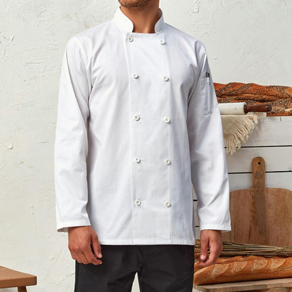 The Artisan Collection by Reprime Long-Sleeve Recycled Chef's Coat, crafted from a blend of recycled polyester and cotton for sustainability and comfort. Made with recycled polyester sourced from post-consumer plastic and GRS Certified, this coat reflects a commitment to eco-conscious practices. It features a classic mandarin collar and ten-button hole wrap over fastening for a professional look, along with high-quality, long-life resin buttons. Additionally, a convenient pen pocket on the left sleeve adds practicality to this environmentally friendly chef's coat. Create your very own using a design or logo!