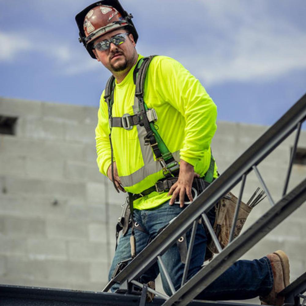 The Berne Hi-Vis Class 3 Long Sleeve Pocket T-Shirt is crafted from moisture-wicking polyester birdseye mesh to keep you cool and dry on the job. Featuring 2-inch reflective stretch tape for enhanced visibility, this shirt is ANSI/ISEA 107-2015 Type R Class 3 Certified for top-level safety. The left-chest pocket adds convenience, while the taped neck seam and relaxed fit ensure all-day comfort. Ideal for those needing reliable visibility and comfort in demanding work environments. Create your very own by adding your design or logo!