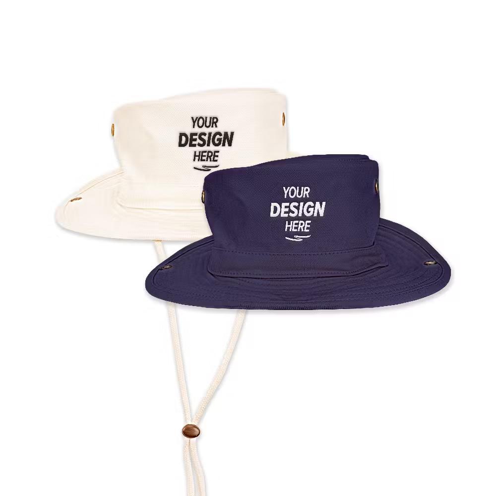 Perfect for outdoor adventures and sun protection, the Big Accessories Canvas Outlander Bucket Hat is crafted from 100% heavy cotton canvas for rugged durability. Built for boating, fishing, festivals, and promo events, it features fine brass eyelets, side snaps to wear the 2.5" brim up or down, a cotton chin strap with adjustable cord lock, and a floatable EVA foam insert. Customize with your logo for memorable branded merch or event giveaways.
