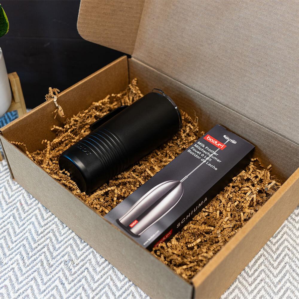 Indulge your staff with the gift of delicious coffee drinks, made easy with the Bodum Schiuma Milk Frother and Patriot 19oz Travel Mug. The frother effortlessly creates a rich and velvety texture, transforming your favorite coffee into a luxurious treat. And with the Patriot 19oz Travel Mug, your staff can enjoy their creations on the go, keeping them hot or cold for hours. Customize them with your logo to add a personal touch and show your appreciation. This thoughtful gift will make your staff feel valued and appreciated, starting their day off with a delicious and enjoyable experience.