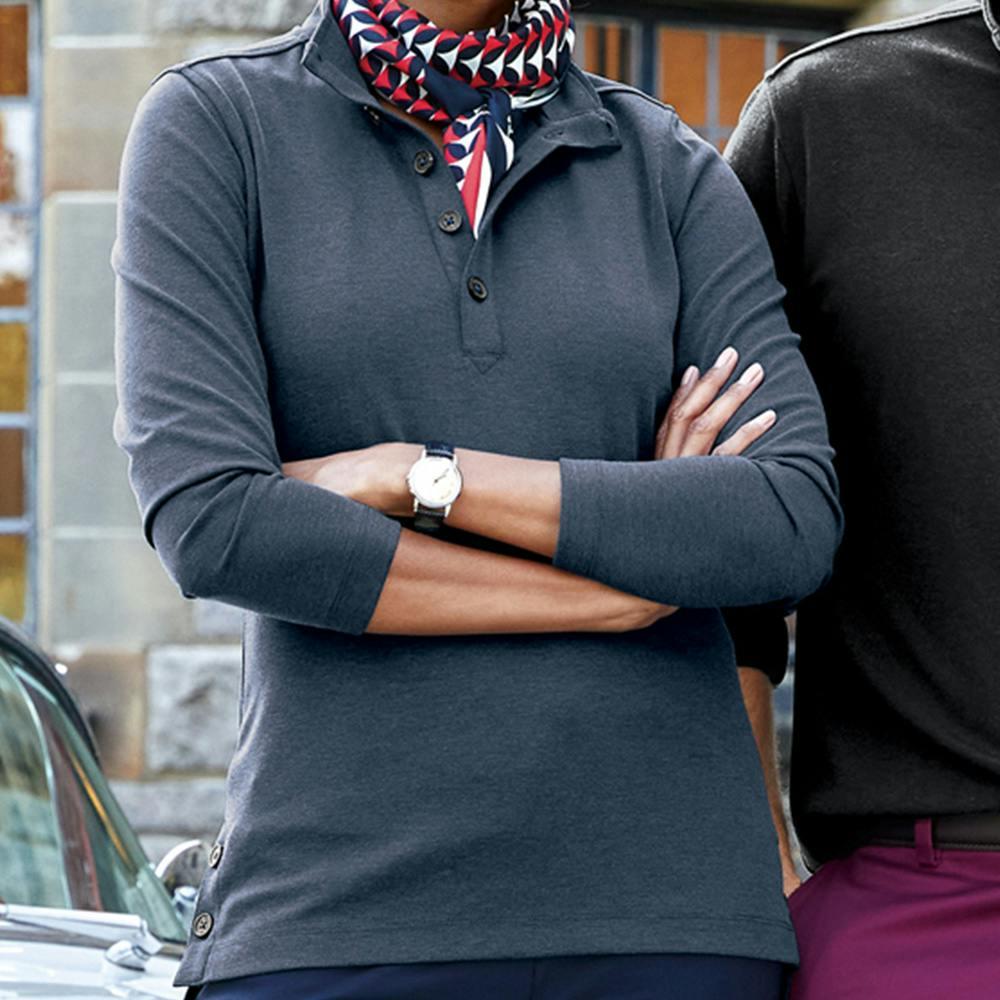 Structured double-knit style with a luxuriously soft hand, this Brooks Brothers Women’s Mid-Layer Stretch Half-Button skips the traditional zipper in favor of a relaxed, elevated look.