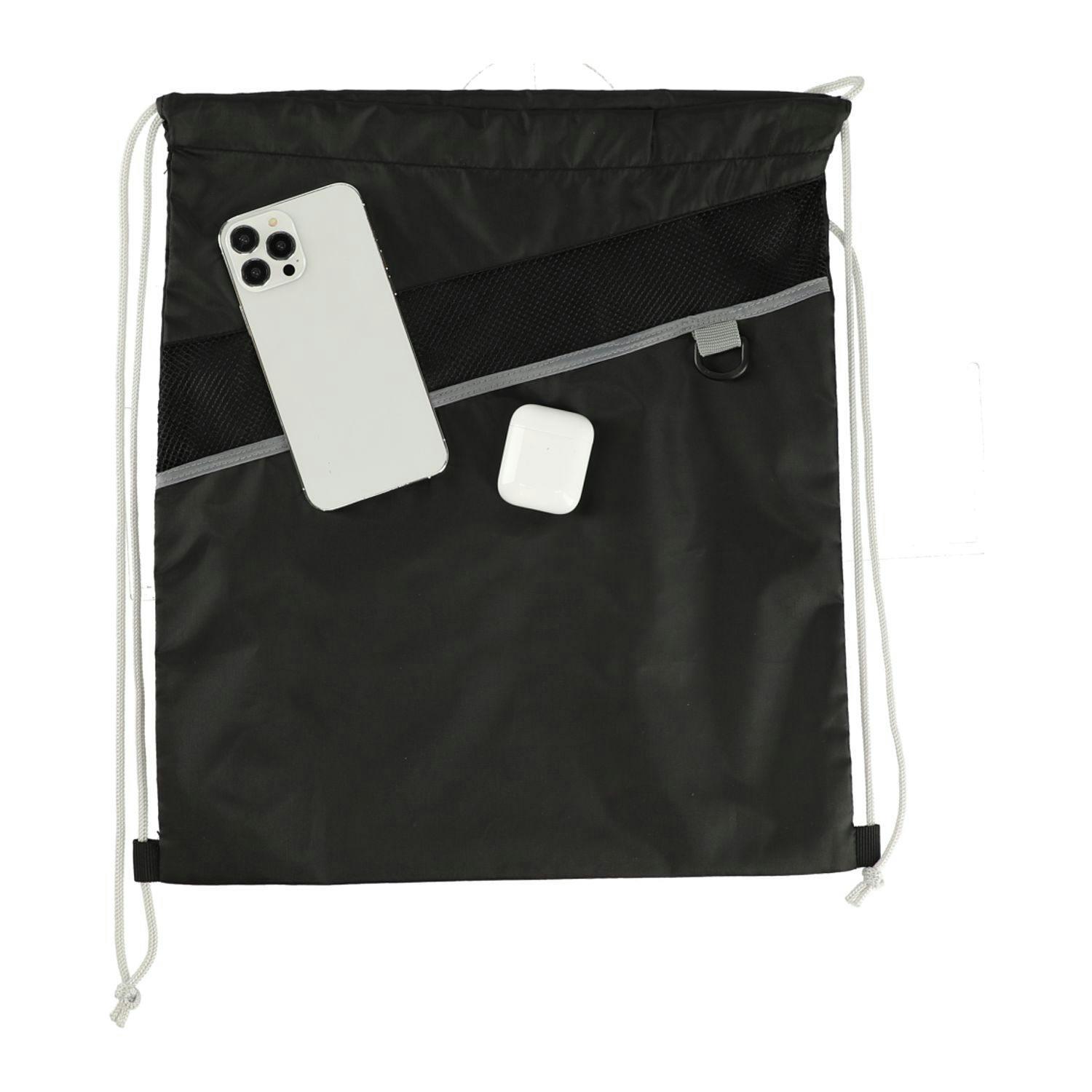 The Combo Recycled Drawstring Bag is a new spin on the classic drawstring bag. Featuring mesh accents, a key ring, and an extra pocket for a functional, yet stylish flair.
