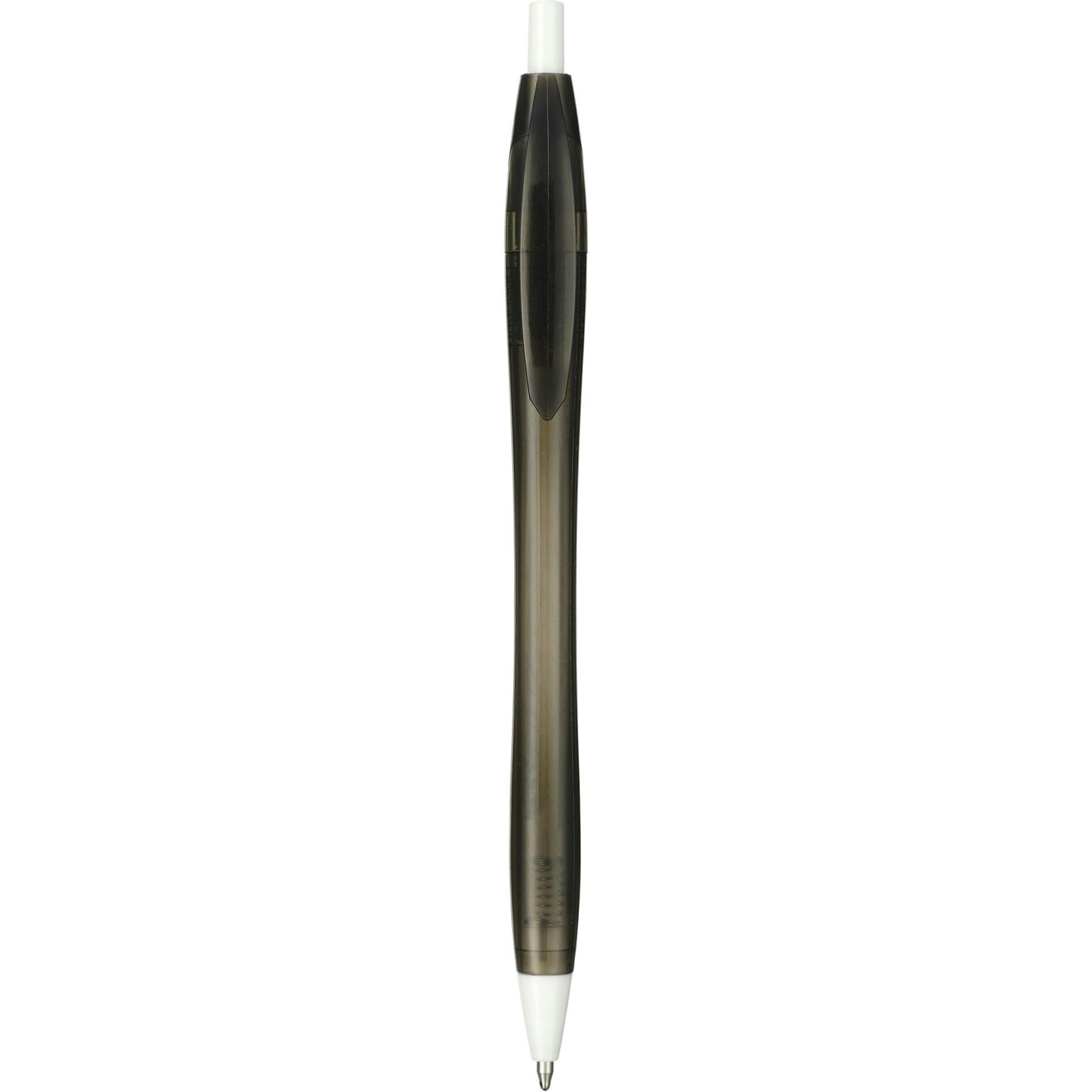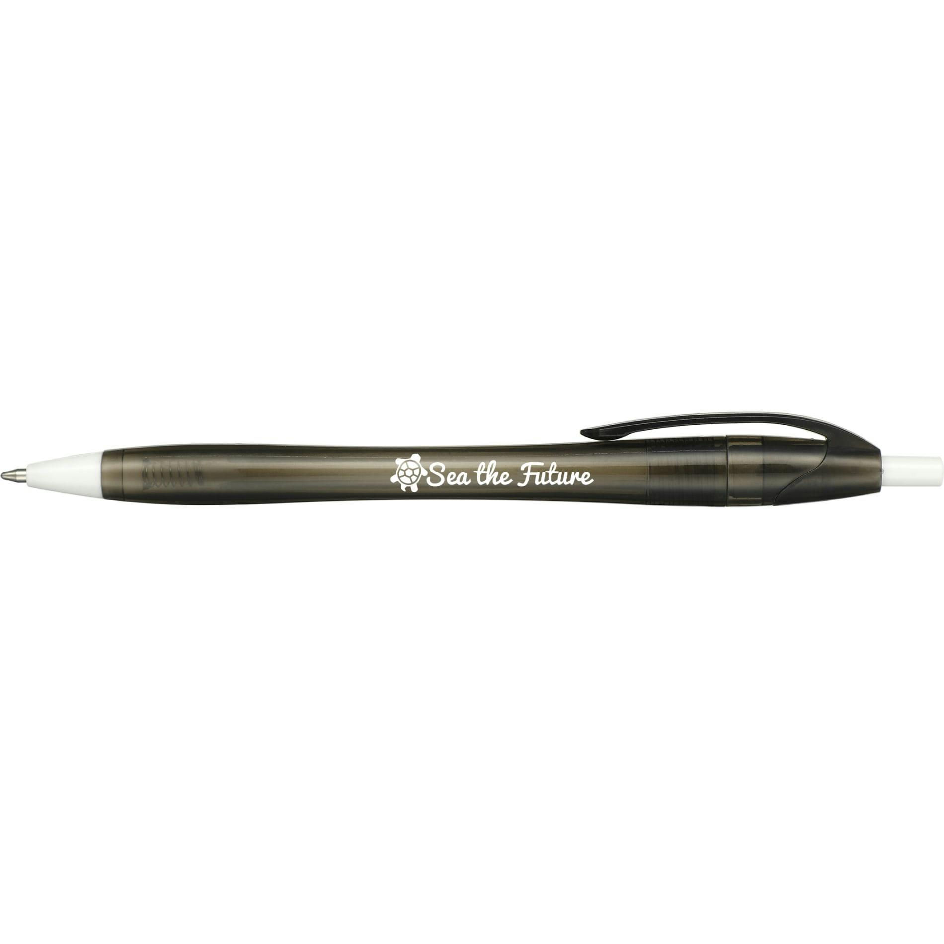 The Recycled PET Cougar Ballpoint Pen features an 87% RPET barrel, click plunger, and tip. Equipped with a black ink cartridge. Pen tip is 1.0 mm.