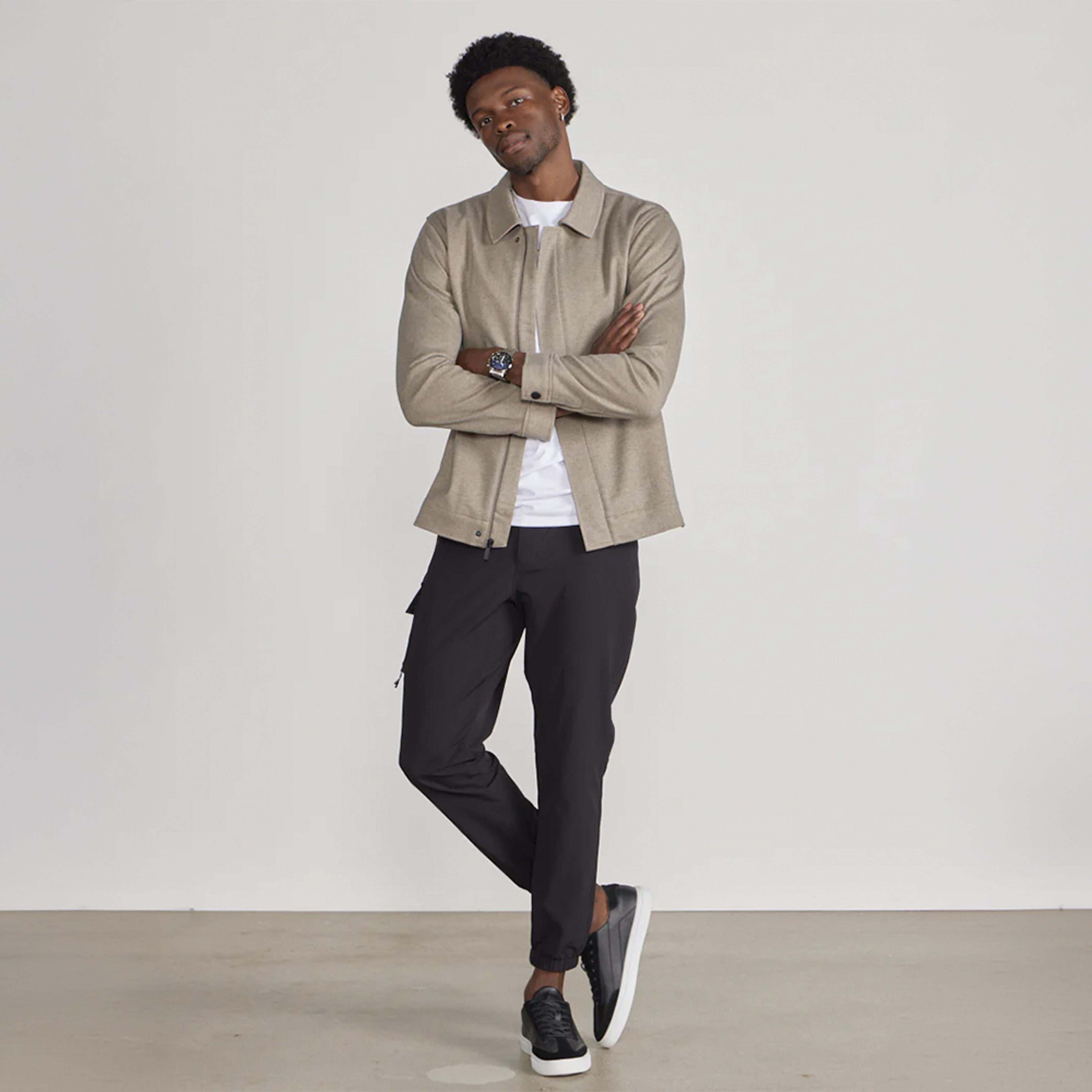 Clean, modern, and built for everyday versatility, the BYLT Coastal Jacket is the perfect lightweight layer for workdays, travel, and nights out. Designed with a minimalist, street-ready aesthetic, this jacket delivers a polished look that transitions seamlessly from city commutes to casual evenings. The structured yet flexible fabric provides comfort and mobility while maintaining a refined silhouette. Thoughtful details like concealed snap and zipper closures, secure zippered pockets, and adjustable snap cuffs combine function with style. Easy to layer and designed for all-day wear, this lightweight men’s jacket offers a sharp, elevated finish for any casual or business-casual outfit.