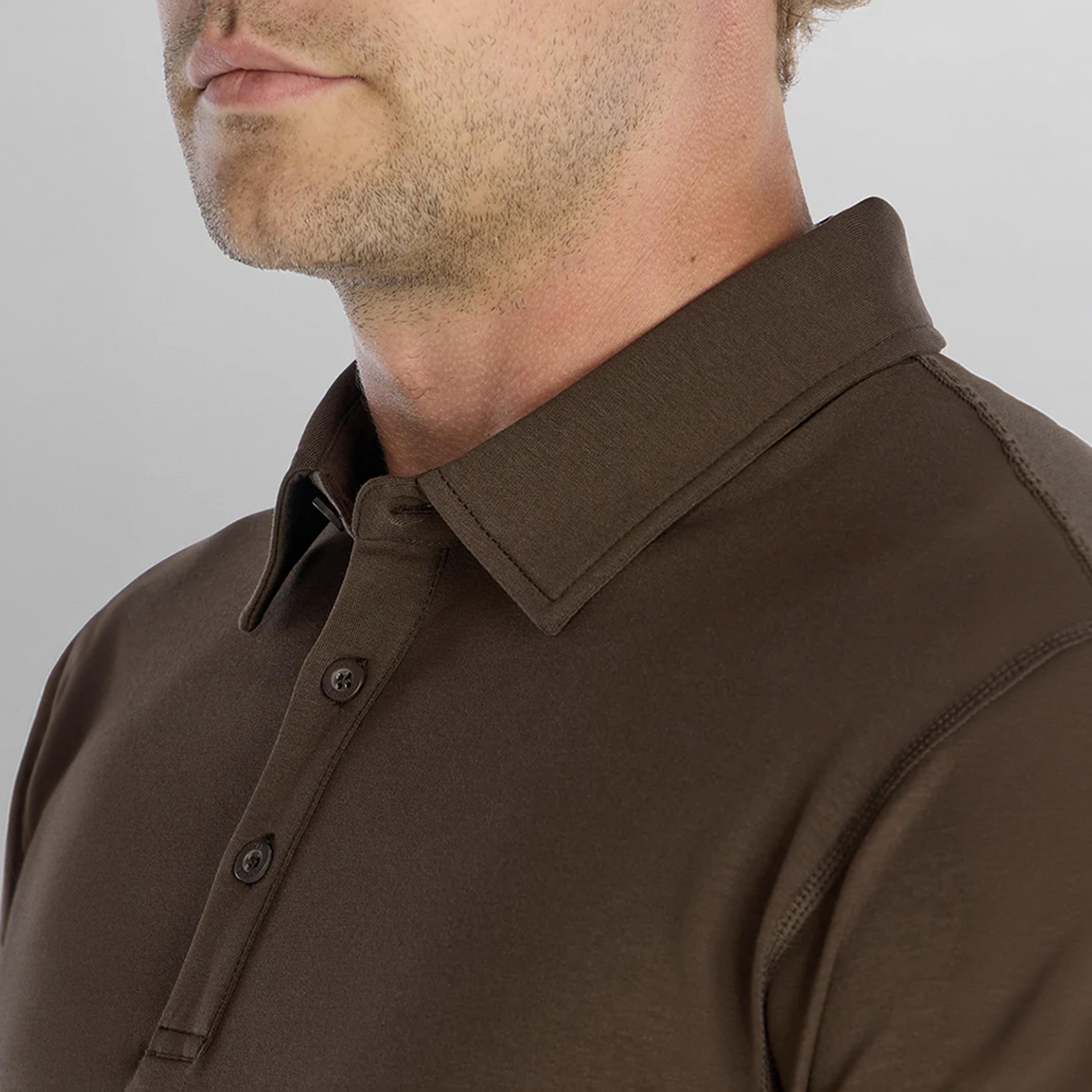 Sharp, modern, and built for everyday performance, the BYLT Drop-Cut LUX Polo redefines classic polo style. Crafted from premium LUX fabric, this men’s polo offers a smooth hand feel, structured drape, and 4-way stretch that moves with you while maintaining a clean, polished look. The slim fit and signature drop-cut hem create a contemporary silhouette that works effortlessly from the office to after-hours. Designed for comfort and versatility, this performance polo pairs easily with chinos, denim, or golf attire—making it a standout option for corporate apparel, business casual settings, travel, or weekend wear.