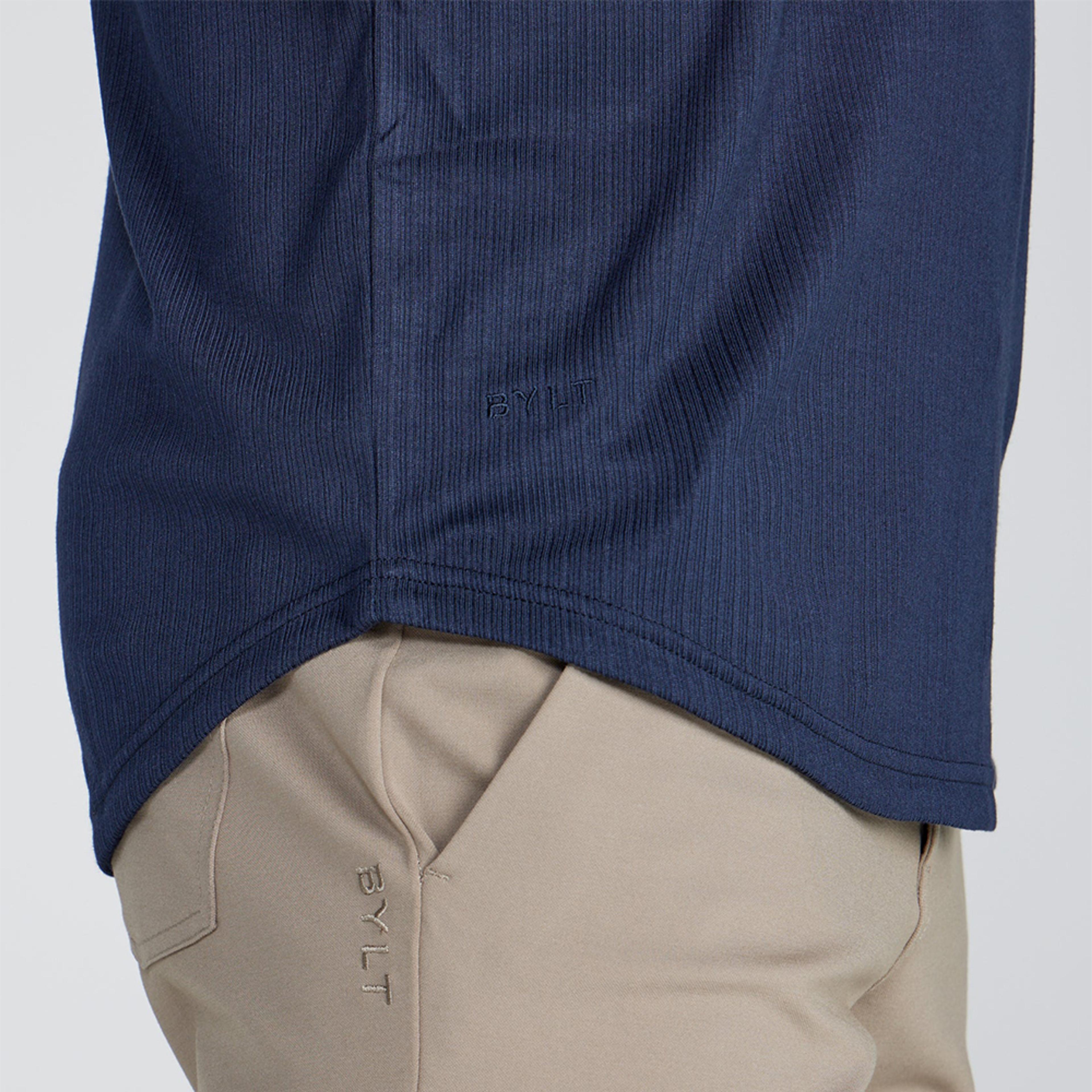 Refresh your everyday style with the BYLT Ribbed Short Sleeve Open V Polo, designed to deliver modern comfort with a refined, versatile look. Crafted from premium ribbed fabric with lightweight stretch, this polo offers a soft, breathable feel that moves with you throughout the day. The classic fit and true-to-size design create a clean silhouette, while the open V-neck and signature drop-cut hem add a contemporary edge. Ideal for workdays, casual outings, or travel, this polo blends polished style with all-day performance.