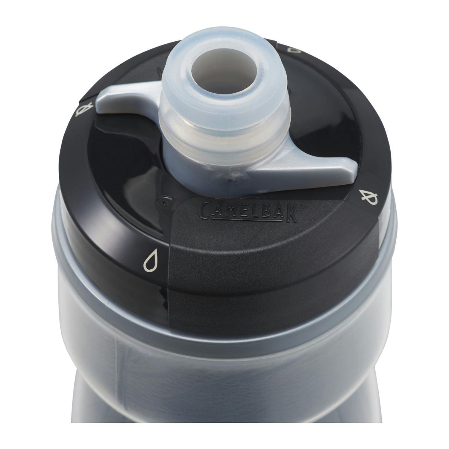 With double-walled construction to keep water cold twice as long as other bottles, the insulated CamelBak Podium Chill is the best of the best for delivering cold, consistent cycling hydration. Features like optimized cage fit and improved cleanability continue to make this bottle a favorite among professionals and recreational users alike. BPA free. 21 oz. Trutaste with Hydroguard- bottle contains and additive (Hydrogaurd) to inhibit microbial growth (does not protect the user from disease-causing organisms) EC 528/2012: supported in the review program of active biocidal substances. Active ingredient: silver sodium hydrogen zirconium phosphate.