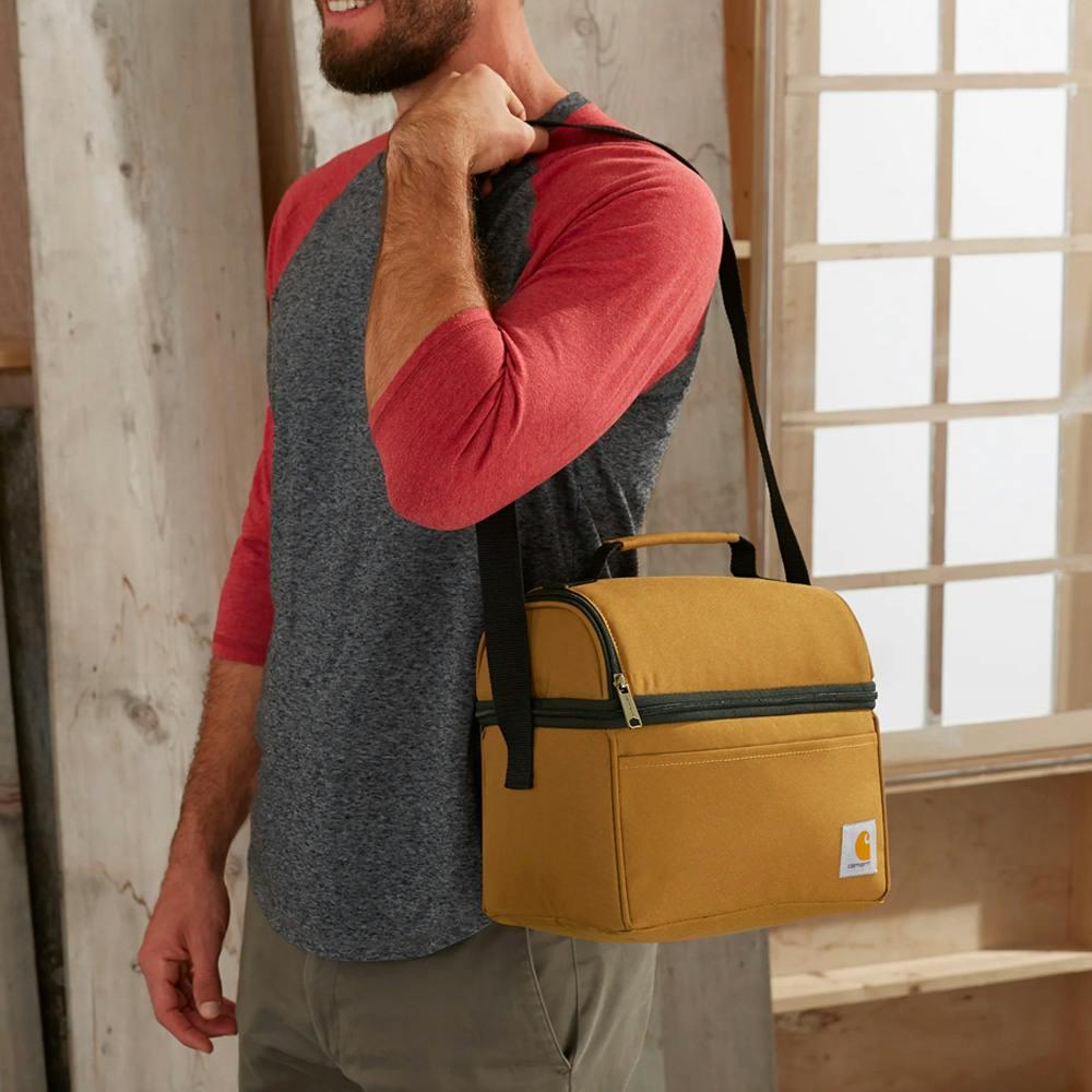 Whether you want your leftovers to stay warm ‘til lunch or that six-pack to stay cool ‘til clock-out, this seam-sealed, insulated cooler is up to the task. A separate top compartment helps you avoid crushed sandwiches and chips. Try out this Carhartt premium durable quality cooler bag with your design.