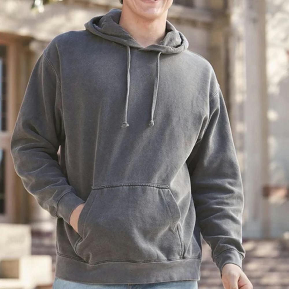This Comfort Colors ring-spun hoodie is soft, warm and a great choice for those chilly days. Constructed with 9.5 ounces, and a cotton-poly blend, this hoodie is durable and a must have. All that's missing now is your design!