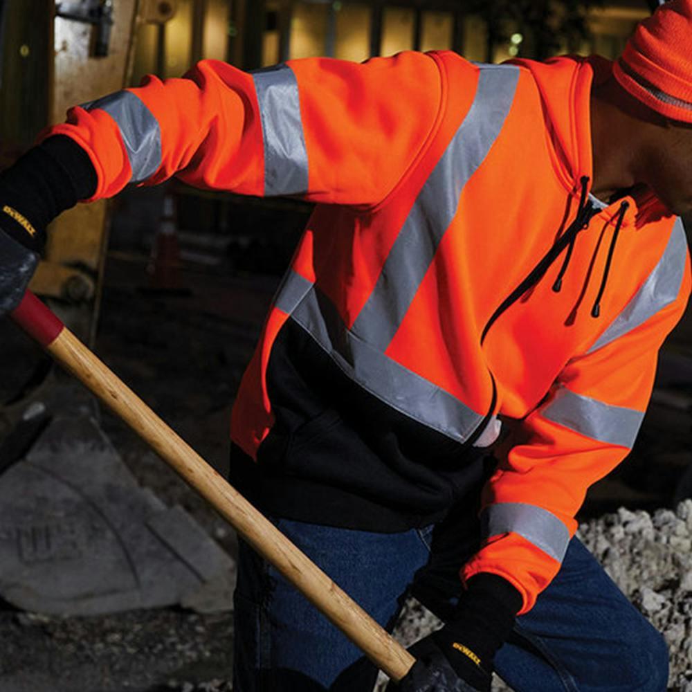 Designed for visibility, this durable heavyweight hoodie is also warm and comfortable. The reflective 2-inch tape meets ANSI 107 requirements and provides 360-degree visibility on body and sleeves.