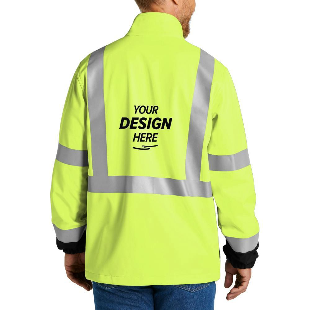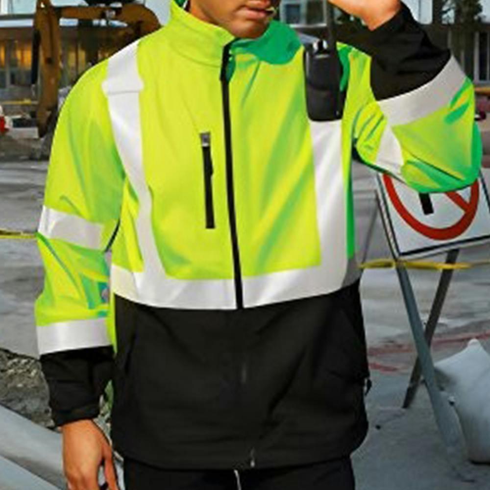 This warm performance soft shell combines superior weather protection with the highest class of visibility. Mic clips at both shoulders allows for easy access and storage.