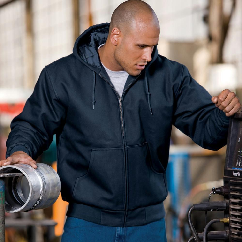 Tough enough to do any job, this CornerStone Tall Duck Cloth Hooded Work Jacket layers easily over shirts and jackets so it's great for mild or harsh weather. Perfect for the job site and fighting off harsh weather, this jacket provides great durability and warmth. Add a design and make sure the crew is prepared for anything that comes their way!