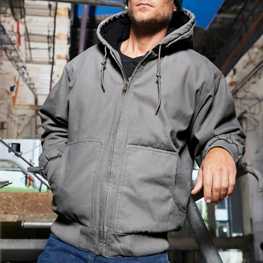Proven to work hard, this enzyme-washed hooded jacket has a supple worn-in look, while maintaining the toughness of duck cloth. Brushed, quilted lining and insulation throughout keeps you warm and comfortable as you tackle the job.
