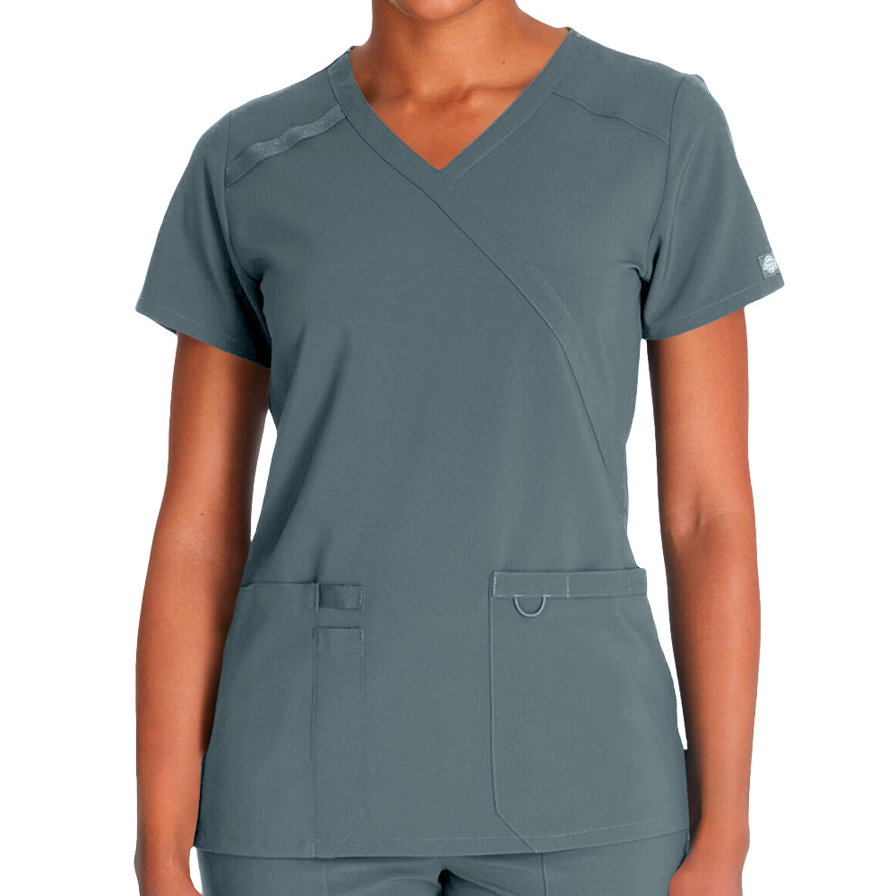 Step into your shift with confidence in this contemporary-fit scrub top that’s built to keep up. With shoulder yokes and instrument loops at the ready, it’s all about function without skimping on flair. Two patch pockets, a handy pen slot, and utility twill tape keep your gear in check—plus, there’s a bungee loop for extra backup. Finished with side vents and signature logo twill tape at the neck, this top brings the vibe and the versatility.