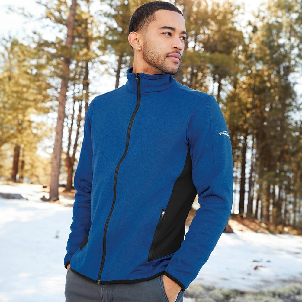 Built for movement, this Eddie Bauer Full-Zip Heather Stretch Fleece Jacket is a smooth-faced, brushed-back fleece jacket that is sophisticated yet has a sense for adventure. This jacket features black contrast details at side panels, locking reverse coil zippers, and stretch binding at cuffs and hem.