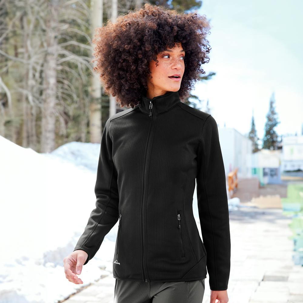 Combining textured and smooth-faced fleece for a dynamic look and unbeatable comfort, this Eddie Bauer Women's Dash Full-Zip Fleece Jacket also has stretch for superior mobility. To top things off, this jacket features reverse coil zippers, front zippered pockets, stretch binding at the cuffs, and hem.