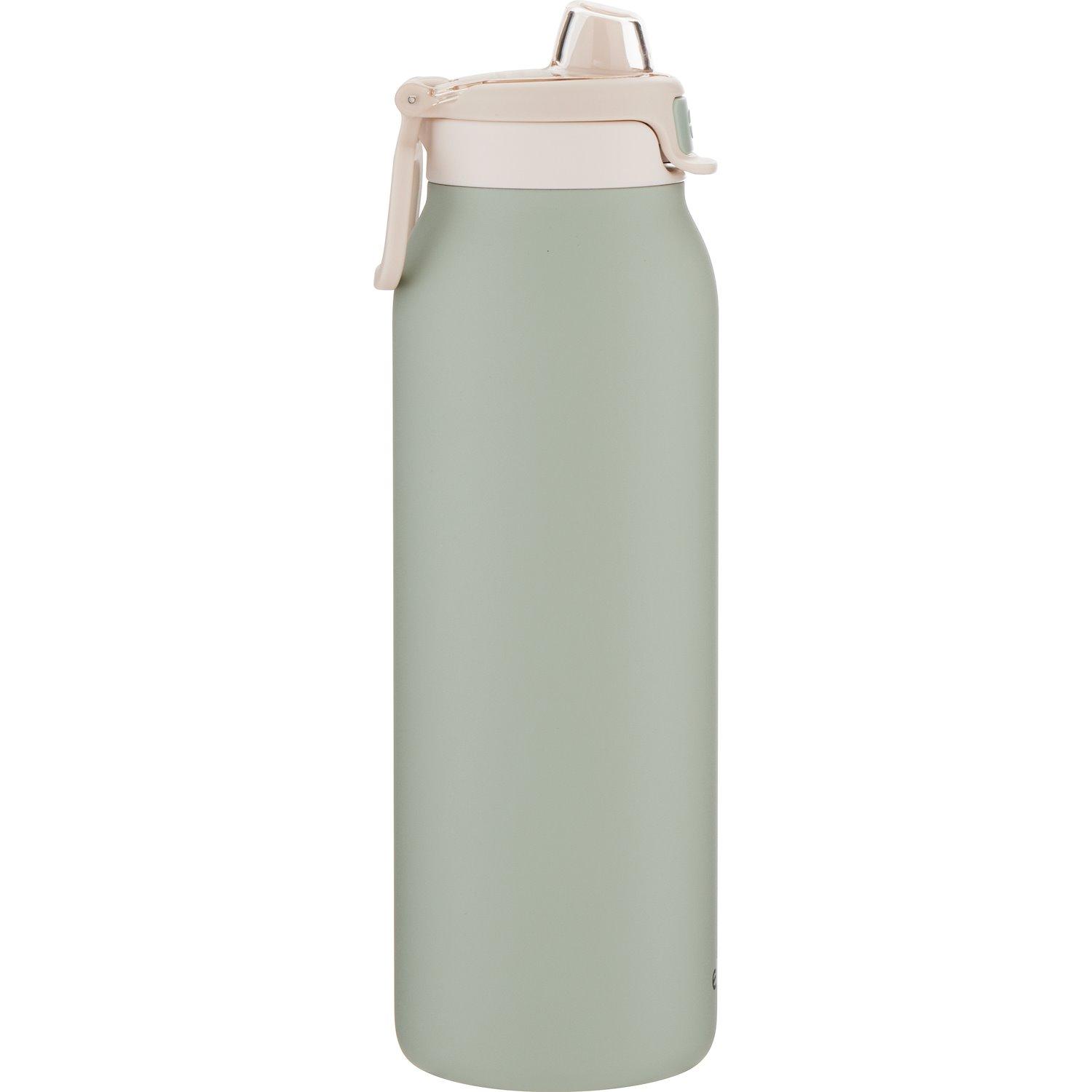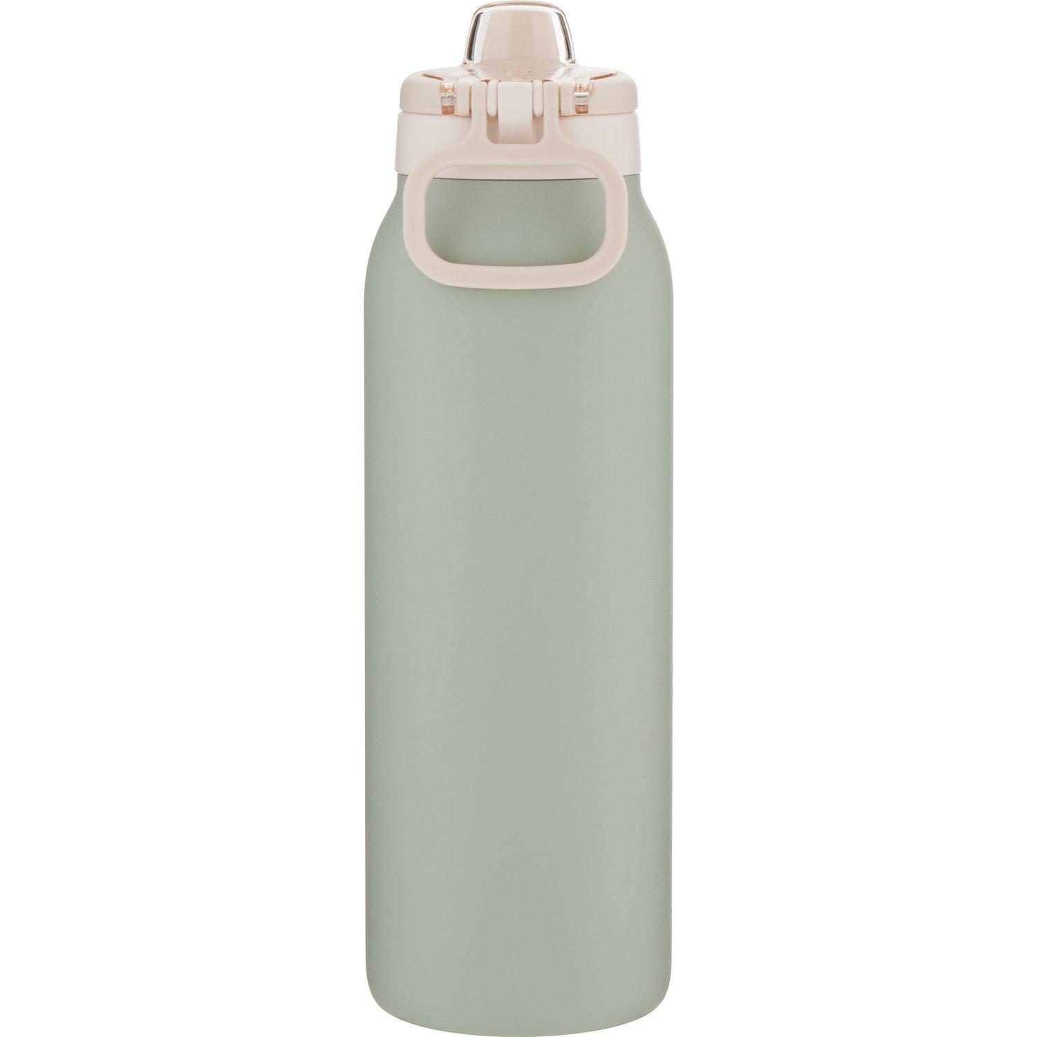 Stay refreshed with this 32 oz stainless steel bottle, designed for durability and all-day hydration. Its double-wall vacuum insulation keeps beverages cold for hours, making it perfect for workouts, travel, and outdoor adventures. The push-button threaded flip lid with locking mechanism includes an internal straw with silicone spout and a wide mouth chug option for versatile drinking. Featuring a Quick Fill™ design for lid-on refills and a durable powder-coated finish, this bottle combines convenience and performance—for cold beverages only.
