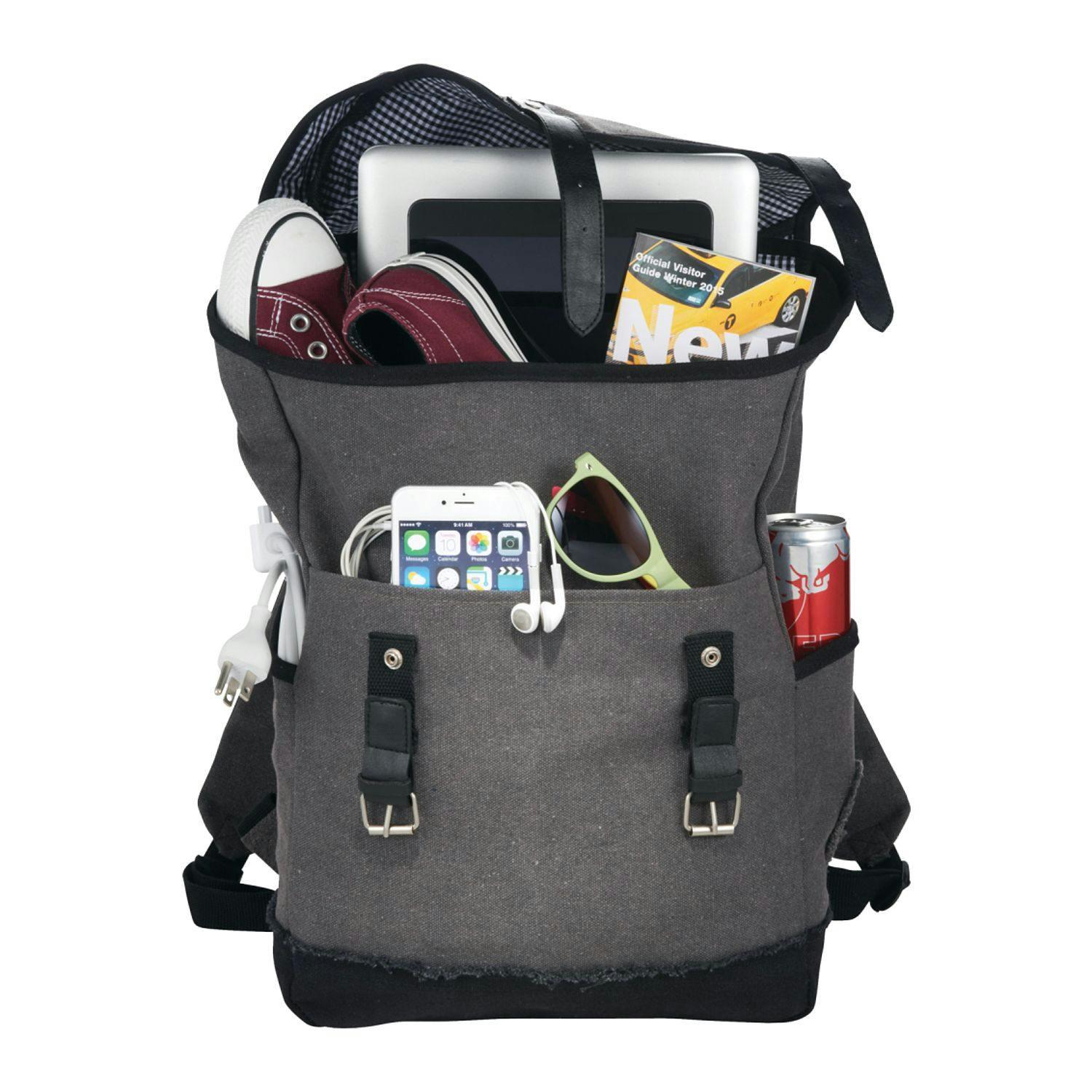 The Field & Co.® Hudson 15" Computer Backpack is part of a collection that has a gritty, urban look and feel with a modern functional design. Spacious open main compartment snaps shut with custom Field & Co. rivets. Exterior slash pockets allow you to store your water bottle or anything else you need quick access to. Black and white micro gingham print on the interior adds a stylish detail while the padded laptop compartment will keep your 15.6 inch computer safe.
