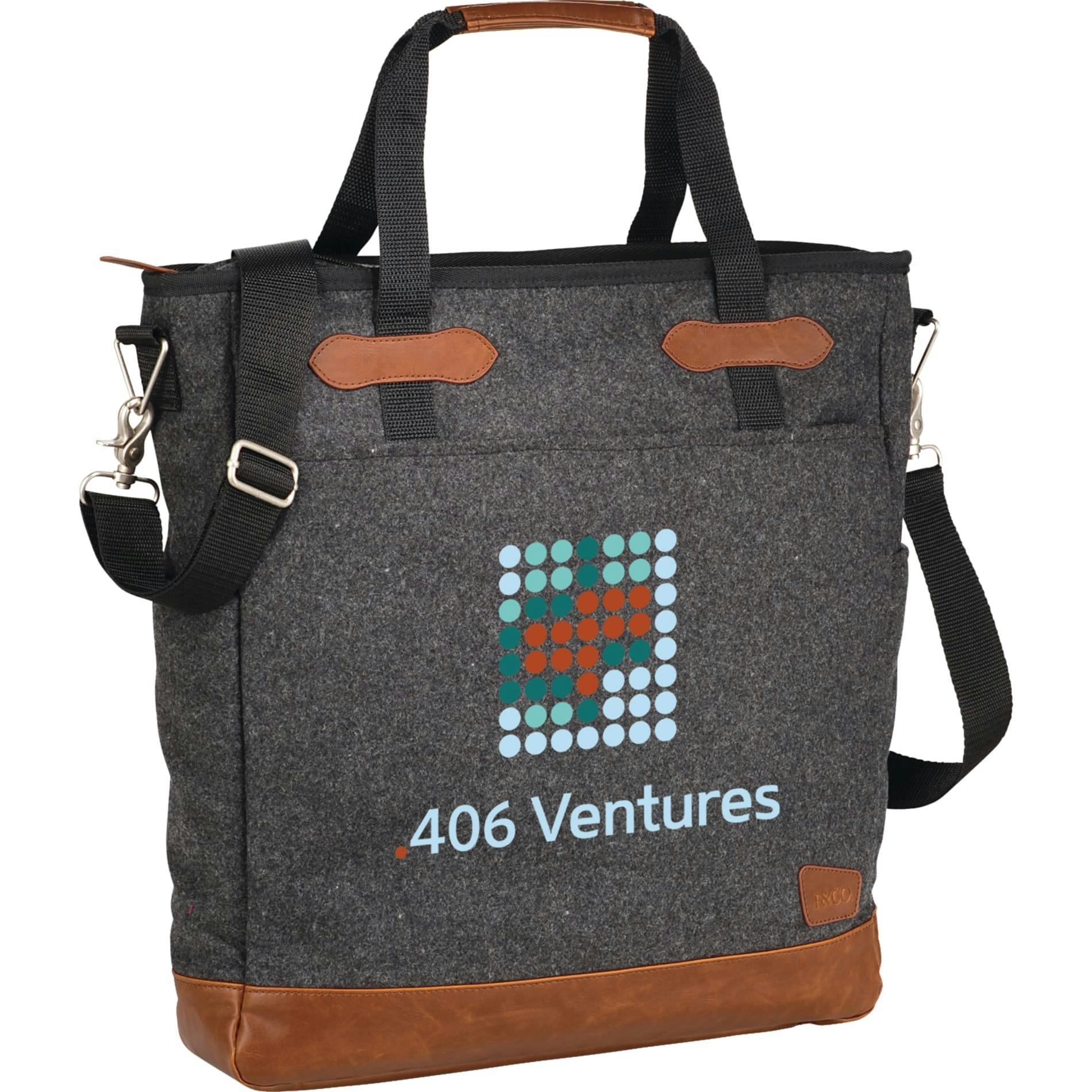 Part of the Field & Co.® Campster Series, inspiration was drawn from retro camping and old school scout looks combined with modern needs. This tote includes the stylization of a wool/poly material and vinyl accents to create a soft computer tote that can hold up to a 15" laptop with additional interior organization and on trend plaid lining.