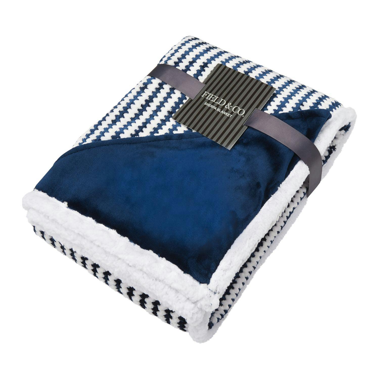 The Field & Co.® Sherpa Blanket features a classic look with modern chevron stripes. Super soft and cozy, a perfect luxurious comfort. Combines soft velour and Sherpa backing with Field & Co.® branding elements and details. Unfolded: 50 x 60. Folded dimensions are 16" H x 11" W x 3.5" D.
