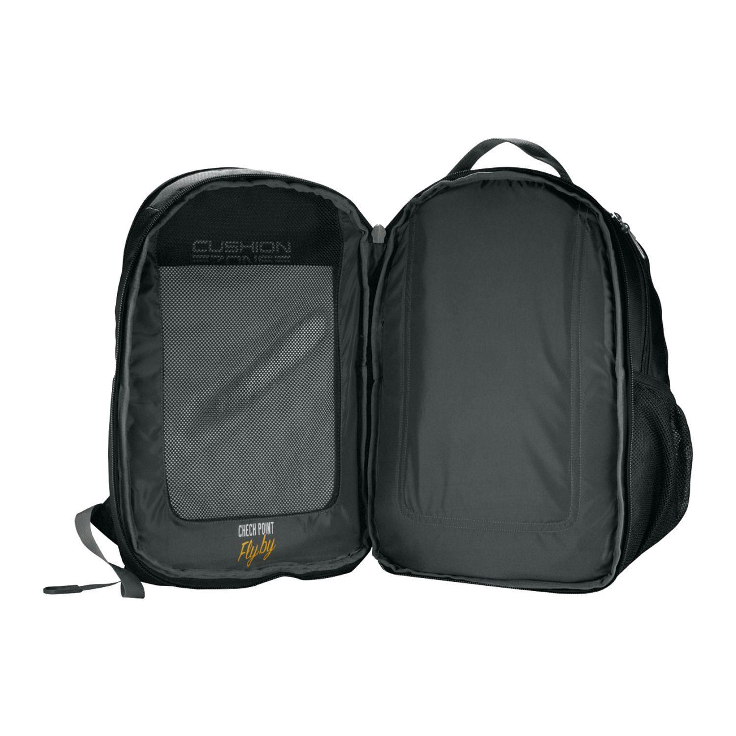 The High Sierra® Fly-By 17" Computer Backpack is a TSA-friendly laptop compartment that allows you to keep your computer inside the pack when passing through airport security. A mesh computer viewing window keeps your computer in full view without removal during TSA security checks. A Cushion Zone™ padded compartment t keeps your notebook computer fully protected while its multiple, large-capacity storage compartments keep your gear organized and easy to find. Features a multi-pocket organizer compartment and a large front zippered pocket and a mesh water bottle pocket. Comes with comfortable, adjustable S-shaped Vapel™ mesh Airflow™ padded shoulder straps and a padded back panel. Convenient padded grab handle. Includes lifetime warranty.