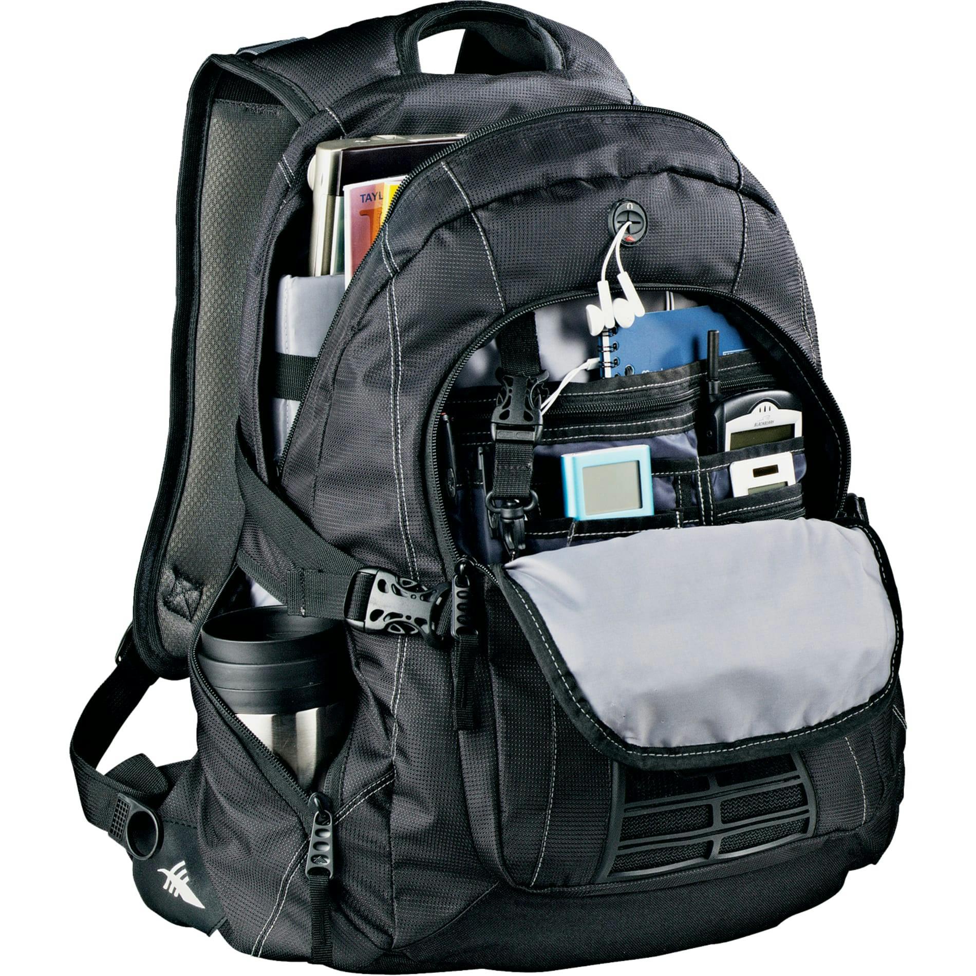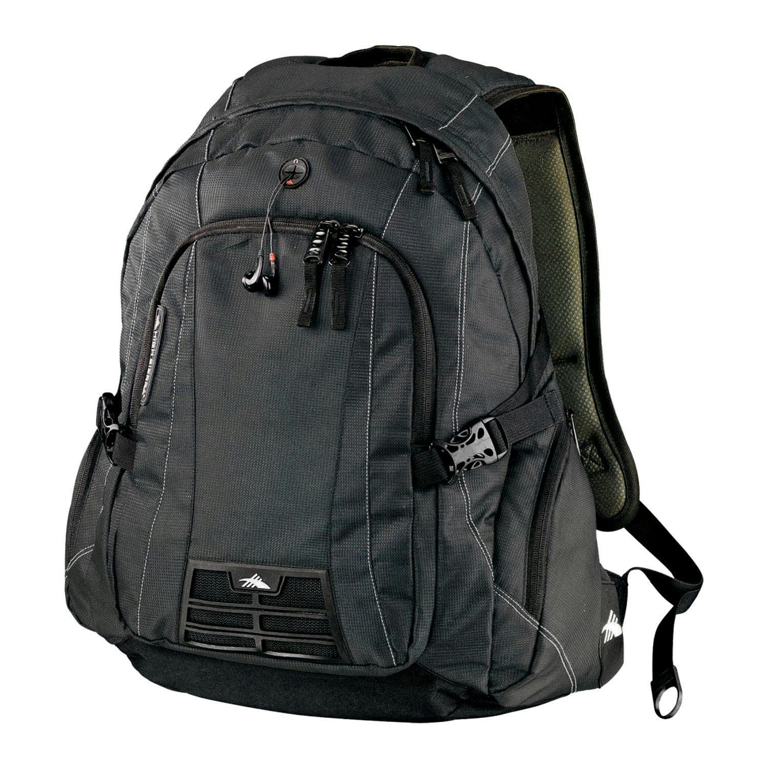 High Sierra Magnum 15" Computer Backpack — a rugged, 15-inch laptop backpack made from 600D Duralite and Waffle Weave for commuters, students and traveling professionals. A back-access, padded laptop sleeve fits most 15" computers, while a deluxe organizer with pen pockets, zippered mesh pocket, key fob and tricot-lined headphone pocket keeps cords, pens and devices tidy. Zippered side pockets, a cell phone pocket and multiple compartments give fast access to chargers, accessories and everyday essentials. Comfort-focused Vapel™ mesh Airflow padded back and yoke-style S-shaped straps with suspension plus a sturdy grab handle make carrying easy. Lightweight, durable and backed by a lifetime warranty, the High Sierra Magnum 15 is the reliable computer backpack for work, school and travel.
