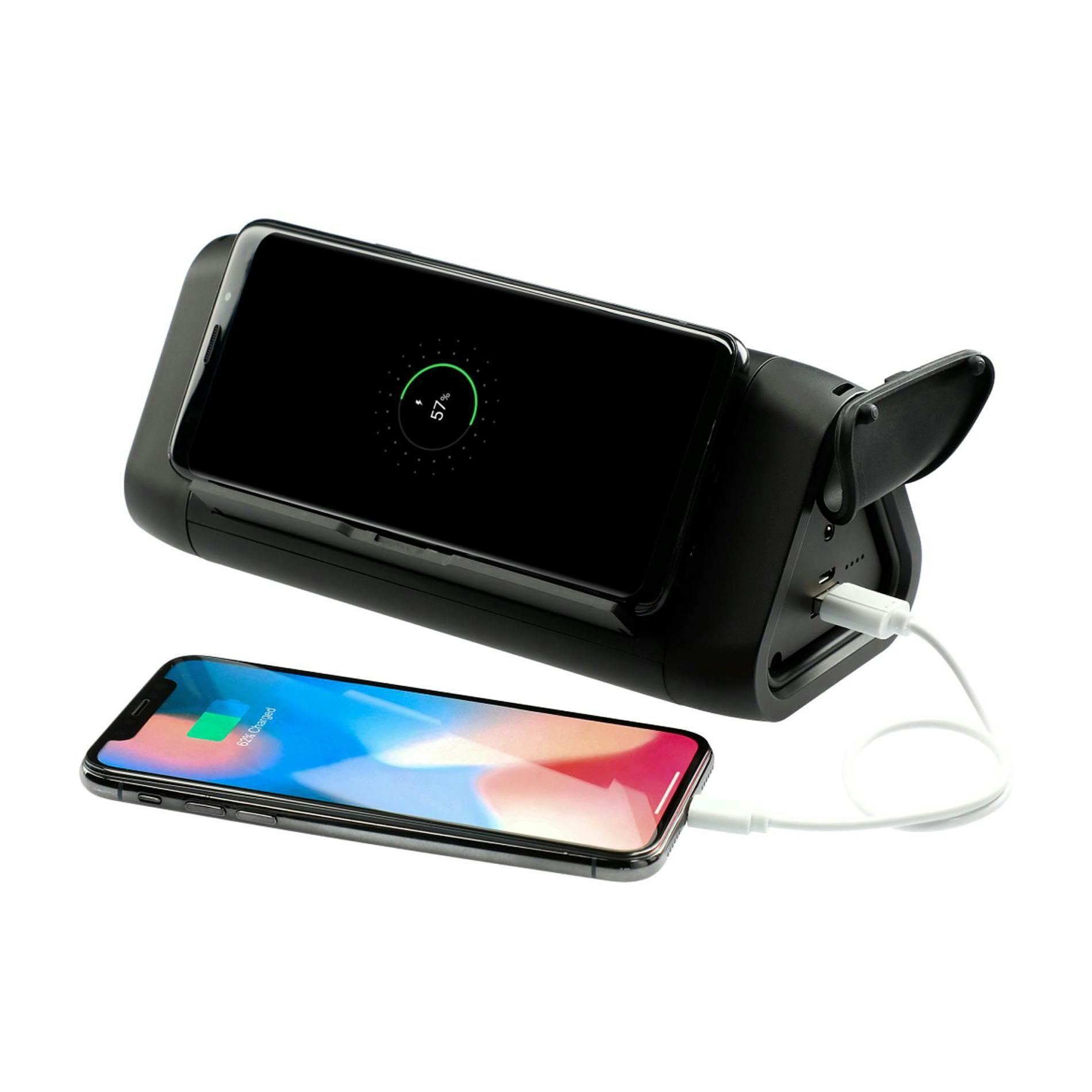 No matter the location you can count on the High Sierra Waterproof Bluetooth Speaker and Wireless Powerbank to deliver. With an IPX7 Waterproof rating the Bluetooth speaker can be submerged underwater for up to 30 minutes. The Bluetooth speaker features a rechargeable 8000mAh battery that provides up to 8 hours of playback time at max volume. The speaker can also be used to charge your mobile device with the built in USB Output or with the built in wireless charging powerbank. Your phone must be compatible with wireless charging. Two devices can be charged at the same time while you enjoy your favorite music. Once your journeys over this Bluetooth speaker makes a great desktop speaker with built in music controls and a microphone for hands free calling. With stereo sound (2 x 3 Watt) the speaker will be heard around the camp site or conference table. Bluetooth Version 5.0. Charging Time: Up to 6hrs. Bluetooth working range is 10 meters (33 feet). Micro USB Charging Cable provided.