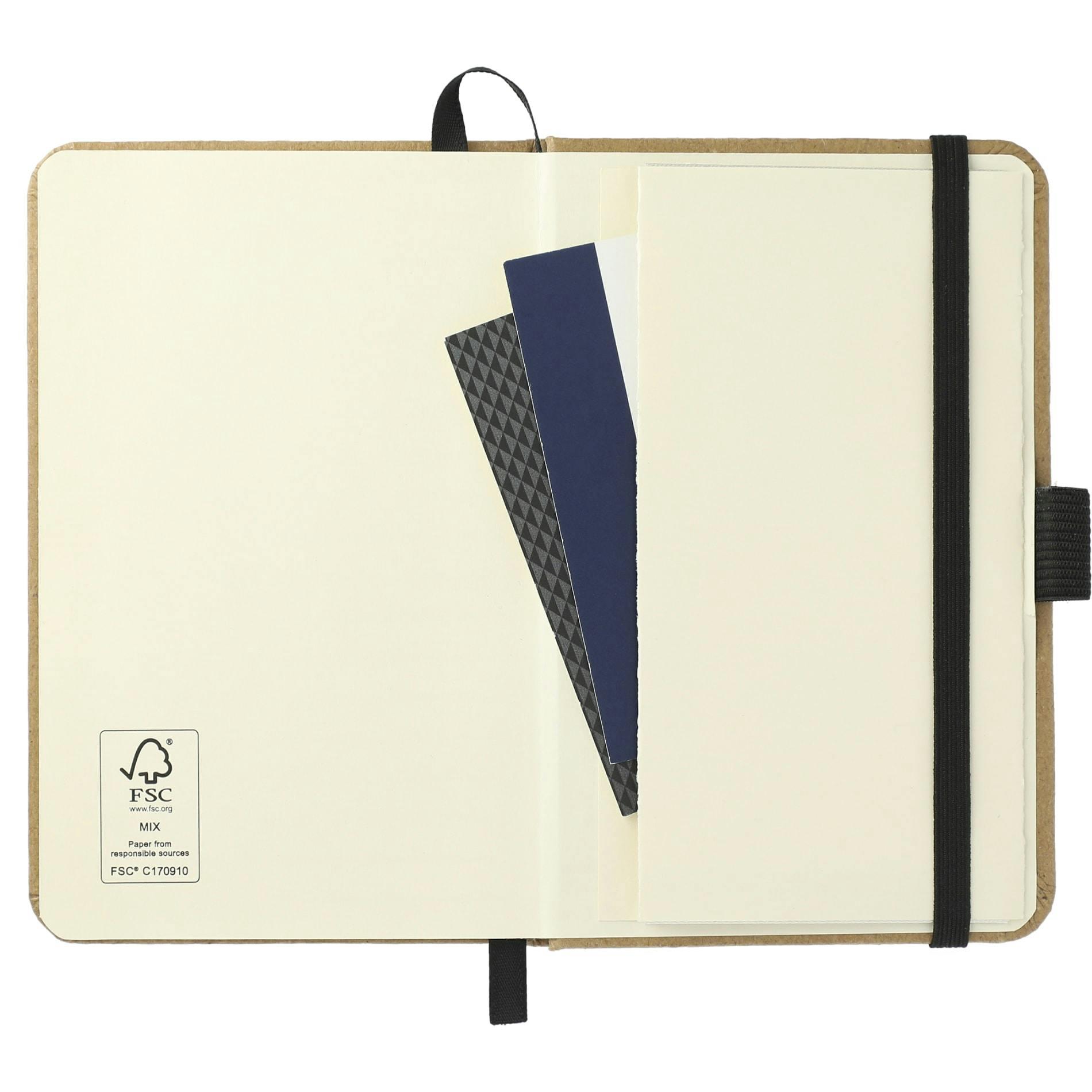 Compact and eco-friendly, the 3.5" x 5.5" FSC® Mix Pocket Bound JournalBook® is a hard-cover, pocket-sized journal with 80 cream, FSC-certified lined pages. It includes an elastic closure, ribbon page marker, elastic pen loop and rear document pocket for receipts or business cards. Perfect as a promotional pocket notebook, corporate gift or everyday travel and meeting companion.