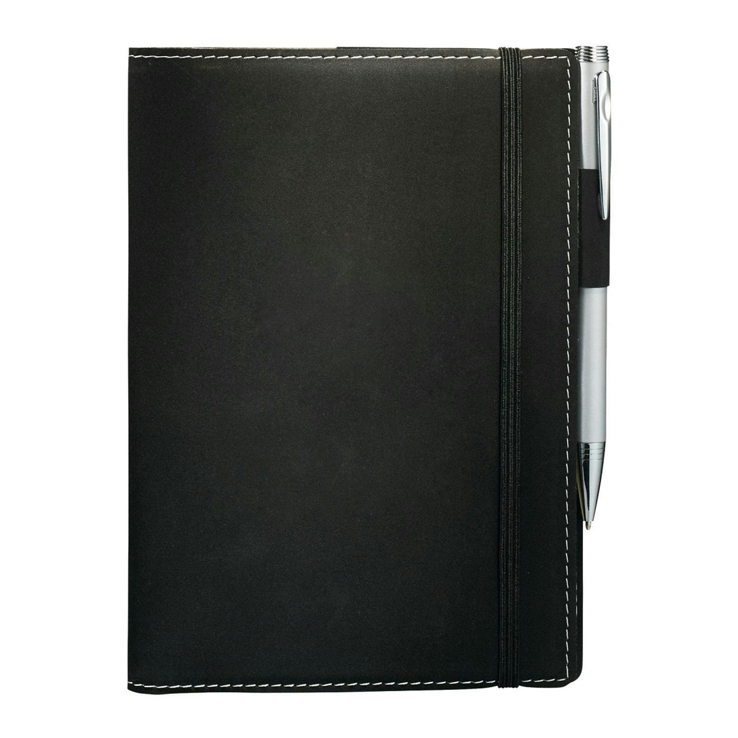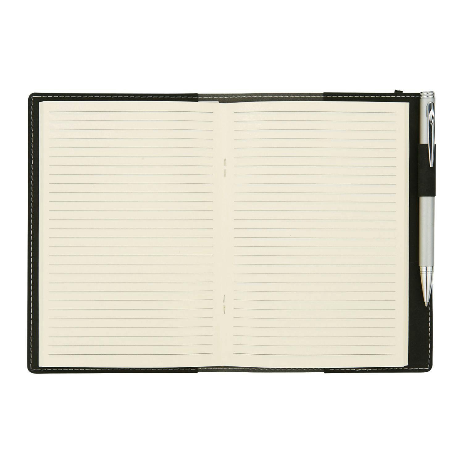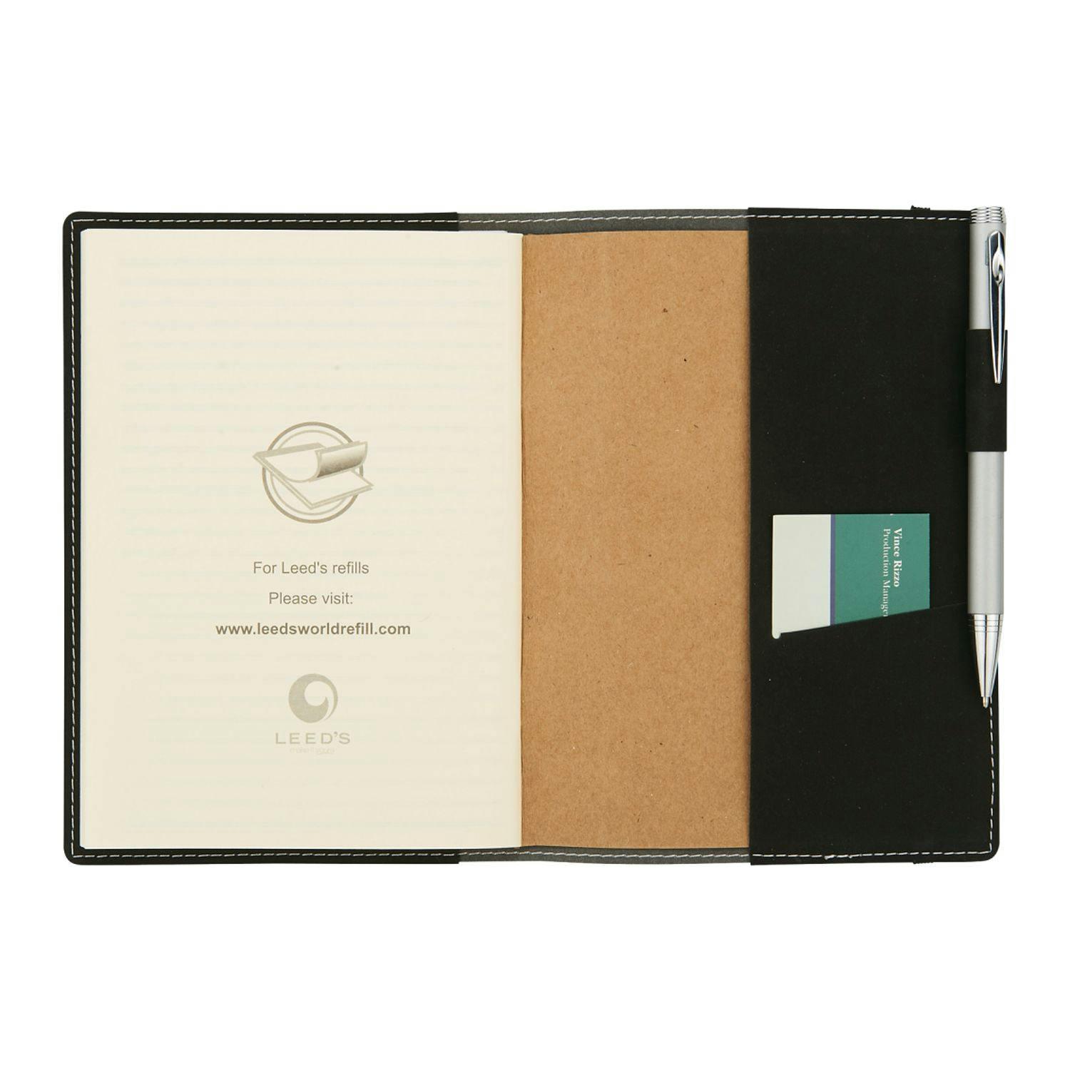 Flexible, soft cover refillable journal with built in elastic closure. Pen loop. Business card slot. Includes 60 sheets of cream lined paper. 5" x 7" paper refill. 9091-97RF.