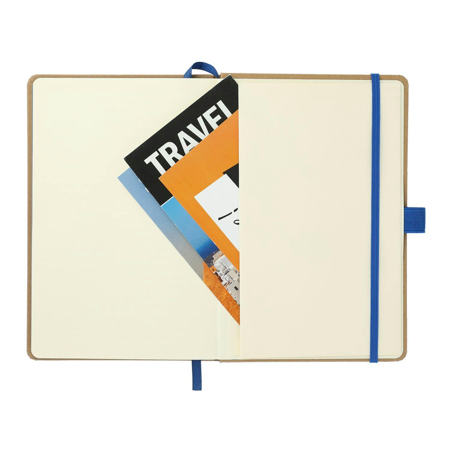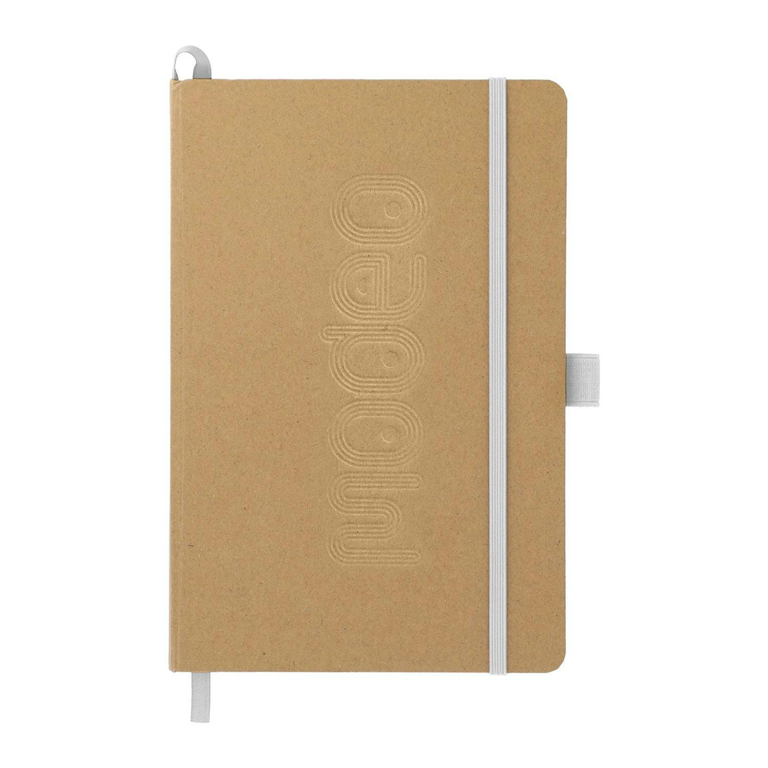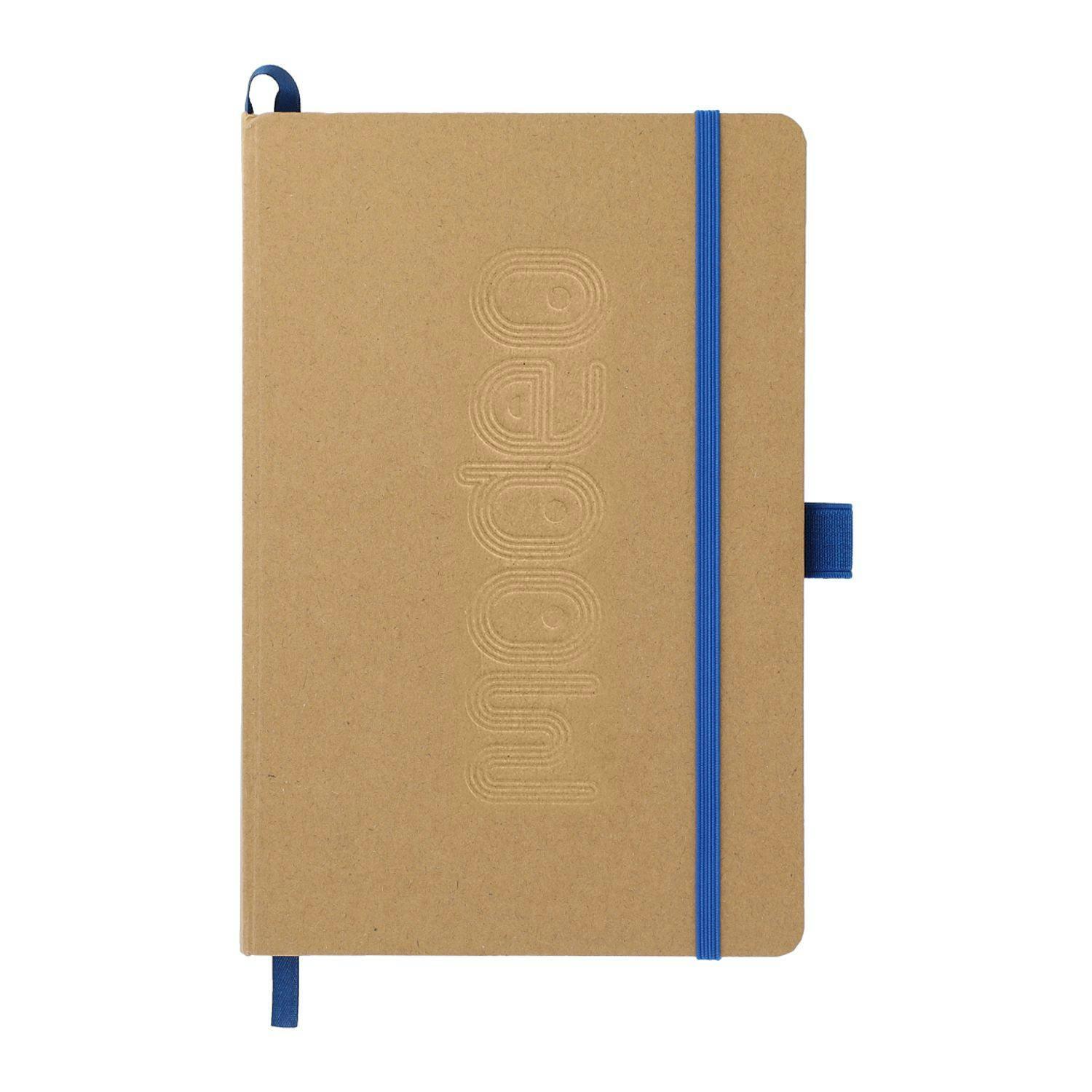 The 5.5" x 8.5" Eco Color Bound JournalBook® features a recycled paper hard bound cover, color accent painted edge pages, color matching built-in elastic closure and pen loop. Includes ribbon page marker, expandable accordion pocket, and 80 sheets of cream lined paper. FSC certified. Due to the nature of the material, there may be color variances.