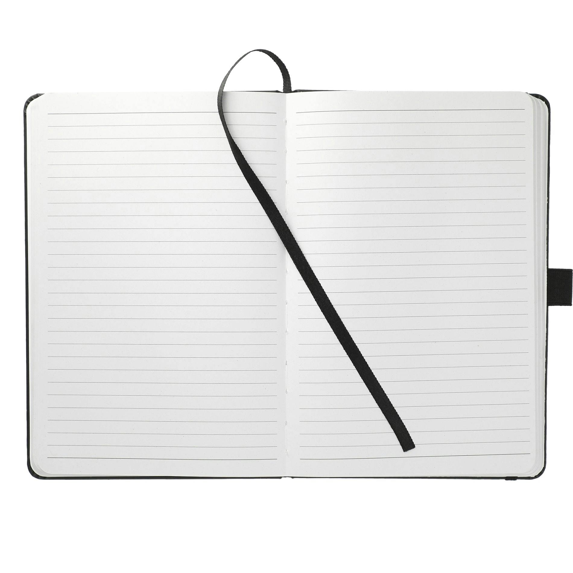 5.5” x 8.5” Mela Bound JournalBook ® features a uniquely crafted with 39% of apple components. Color matching elastic closure, pen loop, and ribbon page marker. 80 sheets of lined recycled paper. Back document pocket.